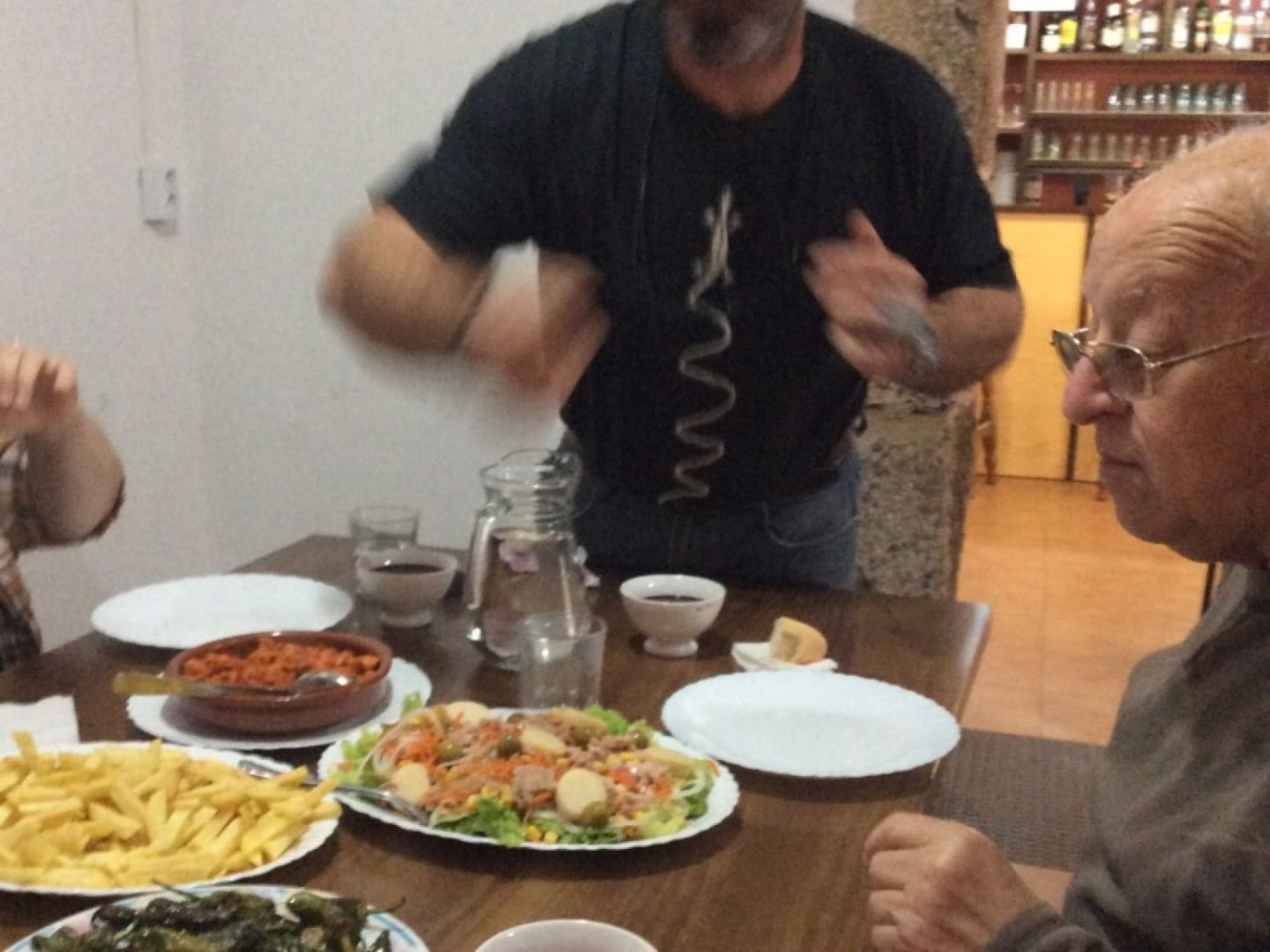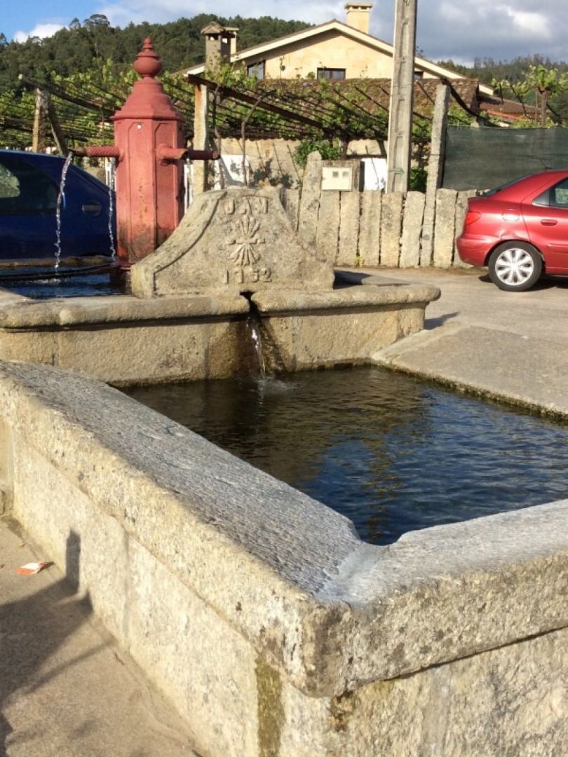 Vsak dan bližje cilju, vedno bolj usklajeni ( zjutraj se odpravimo že v eni uri in pol), vse bolj utrjeni. Za nami je precej dolg dan od 8:30 do 16 ih. Na poti smo večkrat vedrili, ko se je zelo ulilo, pa je veter vse posušil in ponovi vajo vsaj štirikrat. Ne vem točno kaj vse mora ta dež sprati z naših ramen in duš. Pot je bila lepa nekaj tudi po asfaltu. Po 17 km bi morali biti na cilju, po izračunih v vodniku, pa smo hodili še dobro uro. Na tem delu smo zašli na blatno njivo, ki je bila na koncu ograjena in smo se plazili skozi žično ograjo. Tudi pijača in hrana nam je šla h koncu. Pristali smo v prijetnem albergu s prijaznima gostiteljema, ki sta nam stregla z domačo hrano in pijačo in hvalila najino znanje španščine. Perilo naj bi oprali v vaškem javnem vodnjaku, pa smo ga na skrivaj oprali pod tuši.