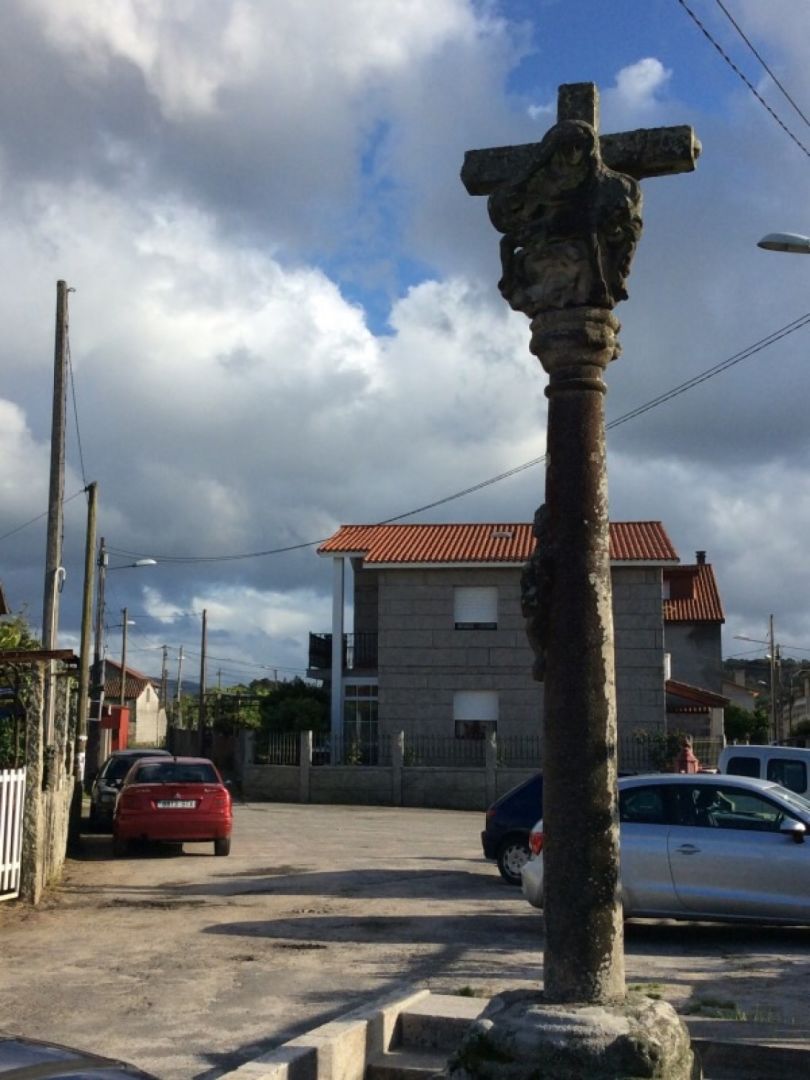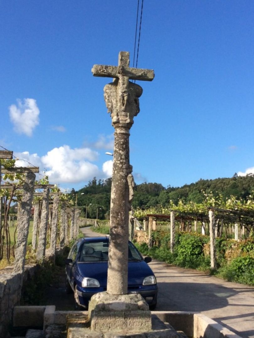 Ob poti nas ves čas remljajo starodavni križi, prav značilni za ta del Galicije. Moška pravita, da s polnim želodcem težko razmišljata in vas samo pozdravljata.