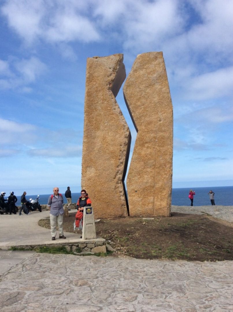 Nic vec romarji, zdaj smo postali turisti. Po zajtrku v albergu Seminario menor smo s taksijem prepeljali nase tezke “mochile” v alberg Acuario, na drugem koncu mesta (tu smo rezervirali prenocisce ze v zacetku marca). Ceprav smo vceraj soglasno sklenili, da tistih nešteto stopnic gor in dol do Seminaria in gor in dol tudi v Seminariu samem, ne bomo vec hodili, se je bilo treba tudi do novega alberga spustiti po nešteto stopnicah dol in potem tudi gor…. Po prav pocasnem vpisu v vse bukle nam je hospitaljero dal postelje v sobi s tremi pogradi (jutri nas bo tu spalo pet) in tri minute do odhoda smo prisopihali na avtobus za Muxio. In dobri dve uri voznje smo izmenicno dremali, tako da od same pokrajine ne vemo kaj dosti napisati. Nas je pa ocaral ze prvi pogled na mestece ob morju - Muxia (beri: mušija). Po tezko pricakovani kavi smo odsli proti cerkvi Virgen de barca (navzgor - kako bi le lahko drugace). Svetilnik, cerkev, skulptura, morje - dokler seze pogled. Povsem razumljivo postane, da so pred stoletji mislili, da je tam konec sveta. Res tako zgleda. Slika pove vec kot vse besede….. Lani je okrog bozica v svetilnik udarila strela, zanetila je ogenj tudi v cerkvi, ki je tako danes brez glavnega oltarja, znamenitih barcic, mozaicnih tal, ... Res skoda…
