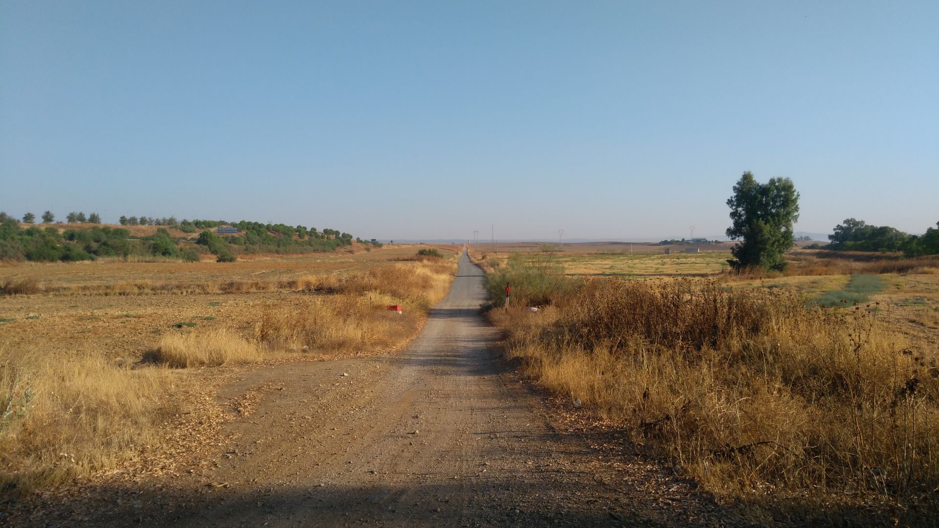 Danes sva odrinila ze ob 6h, ko je bila zunaj se tema. Po osvetljenem mestu je slo brez problemov, ko pa sva kar hitro prisla ven iz mesta, sva morala iz nahrbtnikov izbrskati svetilko, ceprav ne za dolgo saj se je ze kmalu zdanilo. Hodila sva mimo neke na pol razpadajoce stavbe z olimpijskim znakom, kar naju je malo zmedlo saj tu ni bilo nobenih olimpijskih iger. Ce nama lahko kdo ki zna vec spansko lahko kaj prevede, je tukaj povezava. V Santiponce si je Pavel moral nujno privosciti kavo, jaz pa sem si le napolnil zaloge vode. V tem mestu so tudi rusevine rimskega mesta Italica, vendar si jih nisva ogledala, ampak sva hitela naprej. Pot do najinega cilja se je raztezala v ravni crti pred nama, toda ceprav sva imela cilj ves cas na oceh, je bilo do tja dlje kot sva pricakovala. Ob 11h je tudi sonce vec kot prijetno grelo, zato sva bila zelo vesela ko sva prisla v Alberge la Luz, kjer je kar prijetno hladno.