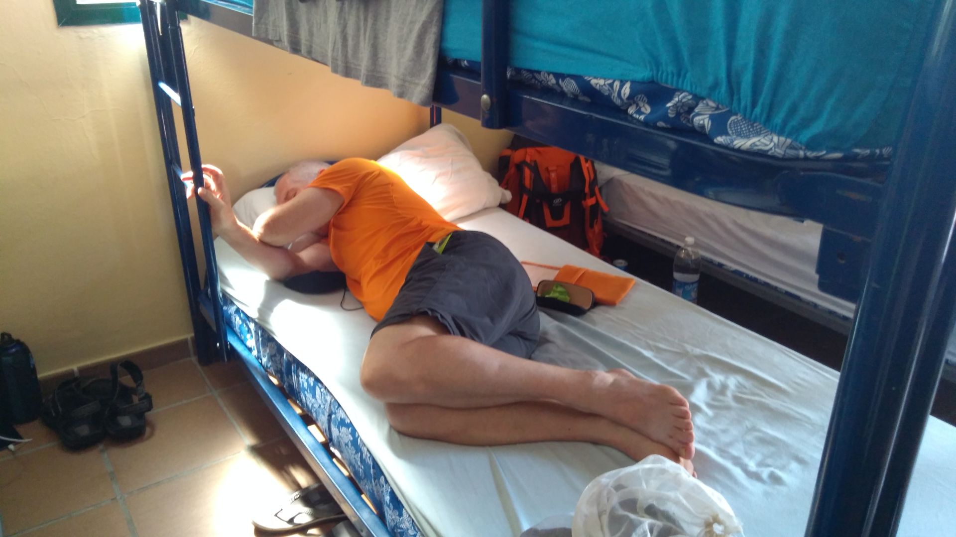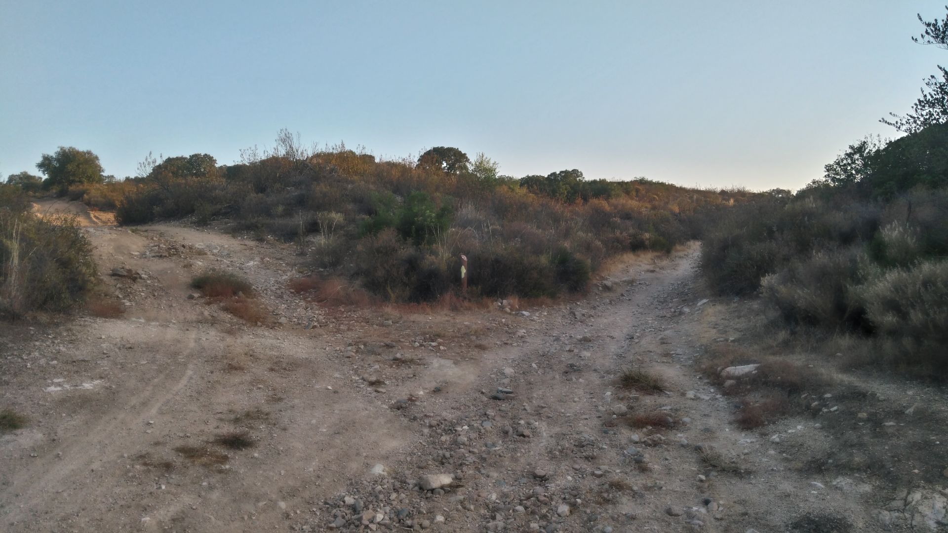 Danes sva vstala 20 do sestih in po zajtrku pricela s potjo. Ze takoj na zacetko sva naletela na oviro - preckanje potoka. Nisva nasla primernega prehoda. Morda samo zato ker je bila se tema, vendar sva se odlocila da greva raje malo okoli cez most. Pot je nato zavila med drevesa z belim cvetjem, ob natancnejsem pogledu pa so bile to oljke, ki so ob umetni luci izgledale popolnoma bele. Vecino poti je bilo mimo oljcnih nasadov, ves cas sva se postopoma dvigala in naredila priblizno 300m visinske razlike. Ob poti ni bilo nobene vasi, na sreco pa je bila crpalka za vodo, kjer sva si lahko napolnila flase. Jutri naju caka podobno, le da je razdalja skoraj 30km.