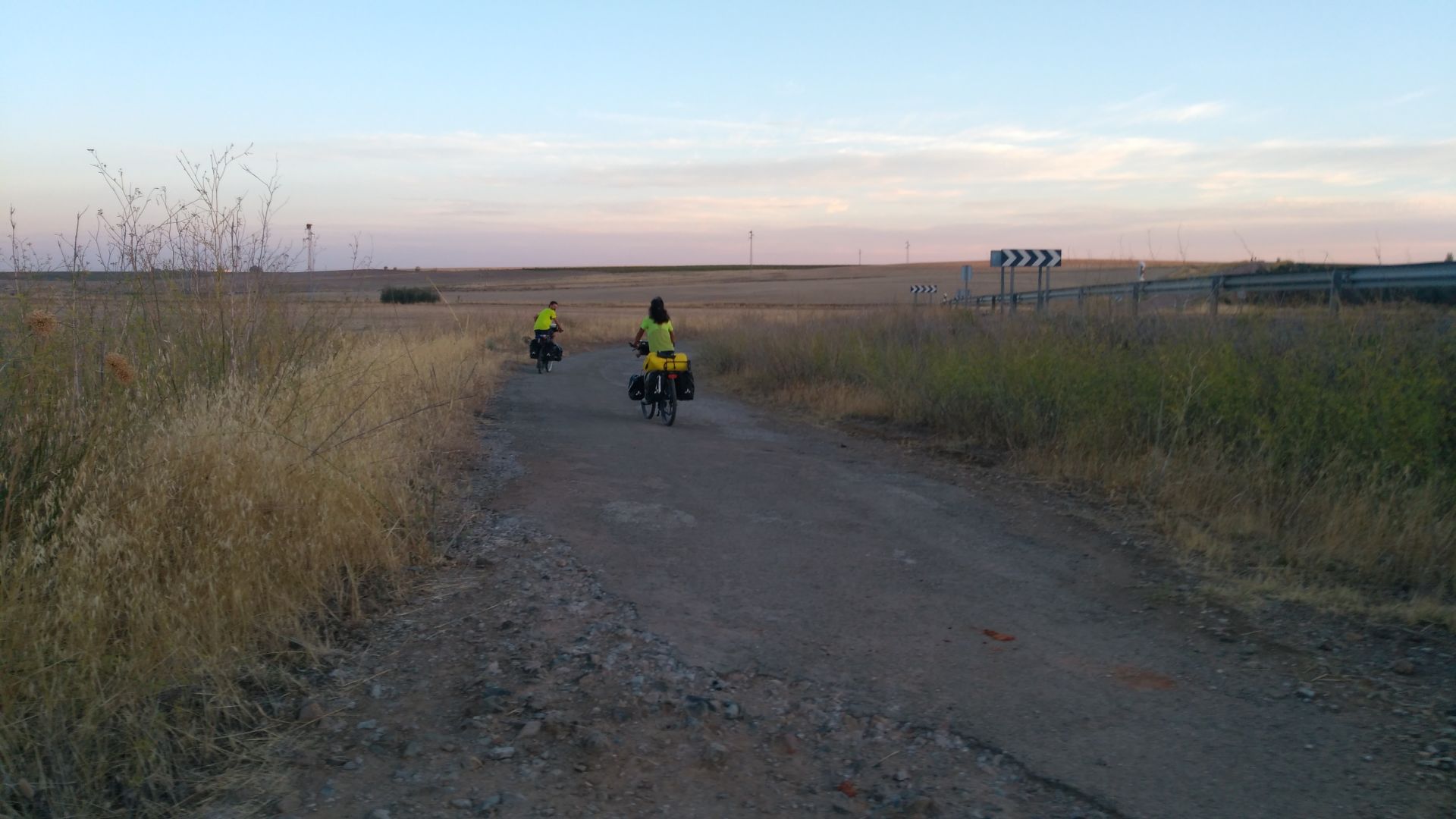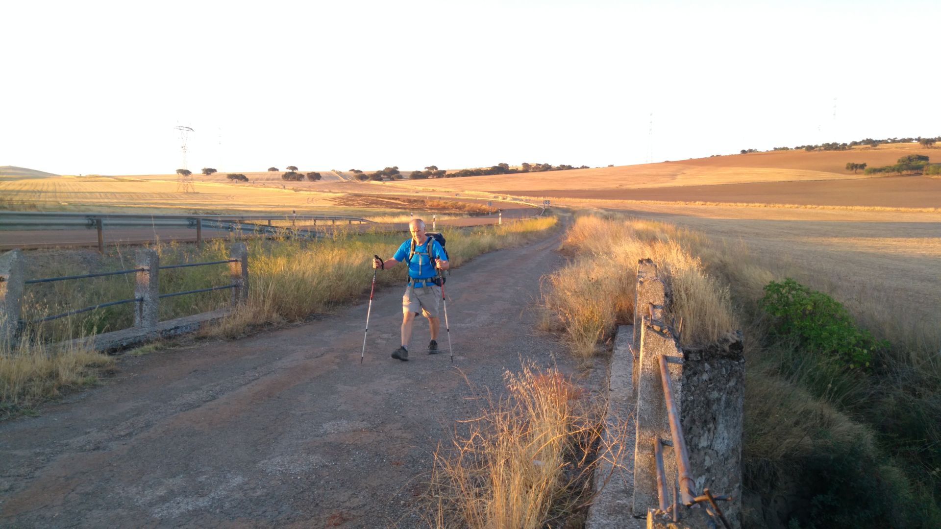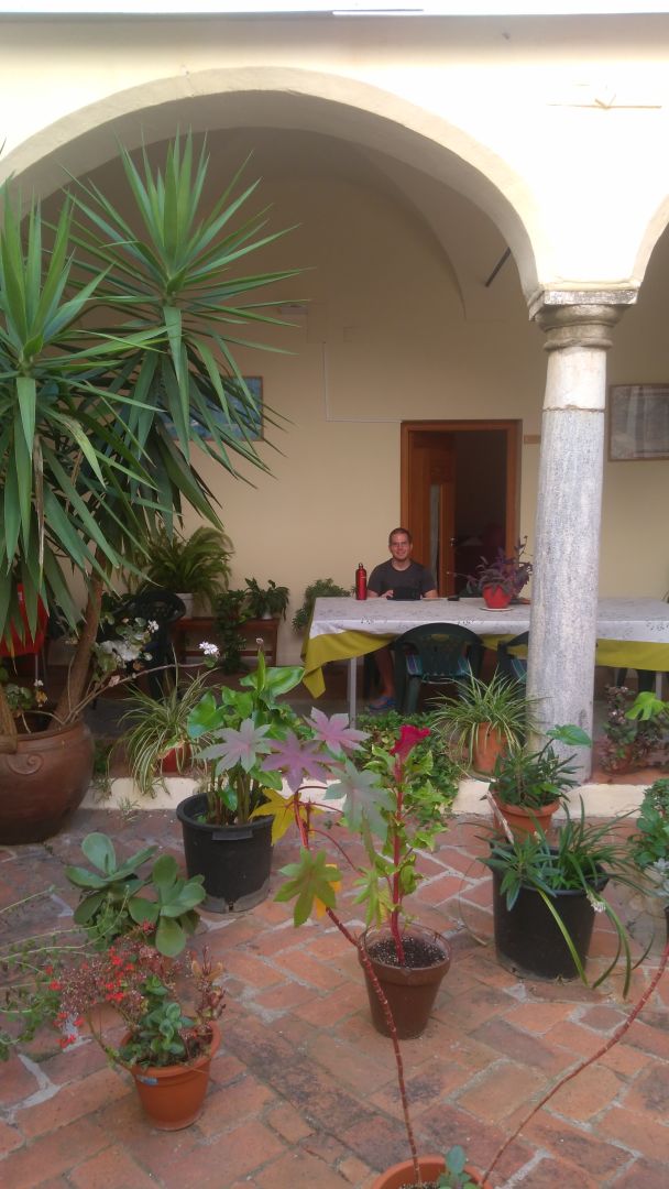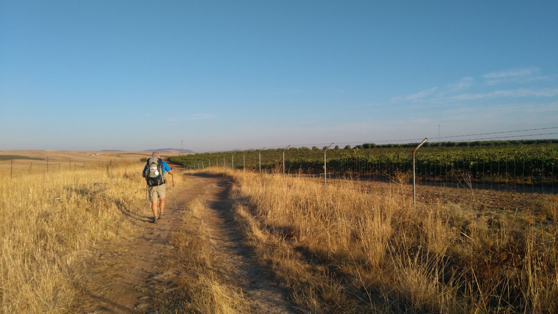 Danes je bila tako svetla luna da sva pot pricela v mesecini brez svetilk. Makadamska pot cez hribcke se nadaljuje, danes pa sva prvic ob poti naletela tudi na vinograde. 5km pred ciljem sva si lahko v vasi privoscila malico in napolnila vodo, tako da sva potem brez problemov zdrzala pot po soncu do cilja. Alberg je spet v samostanu, ko sva prispela sva morala se deset minut pocakati, da so pospravili do konca, so naju pa vsaj spustili v senco.