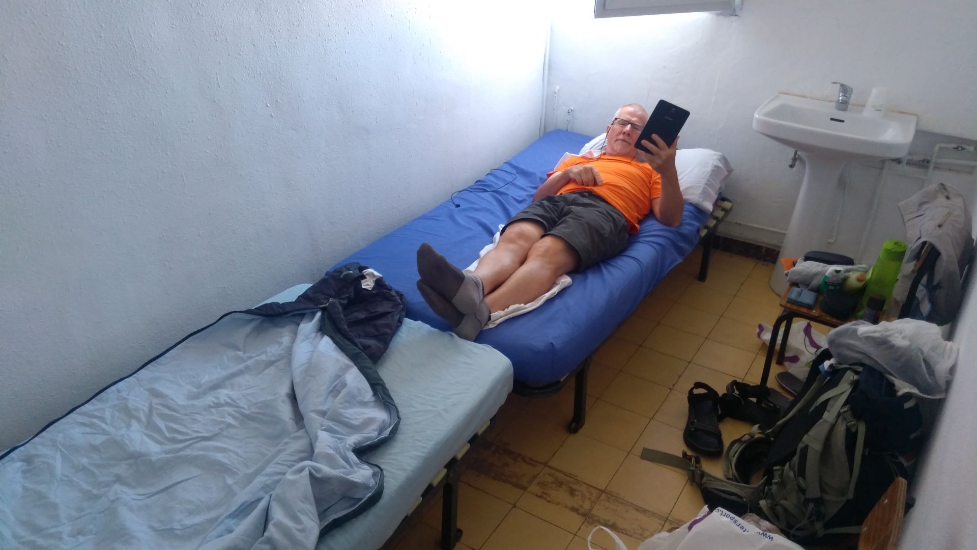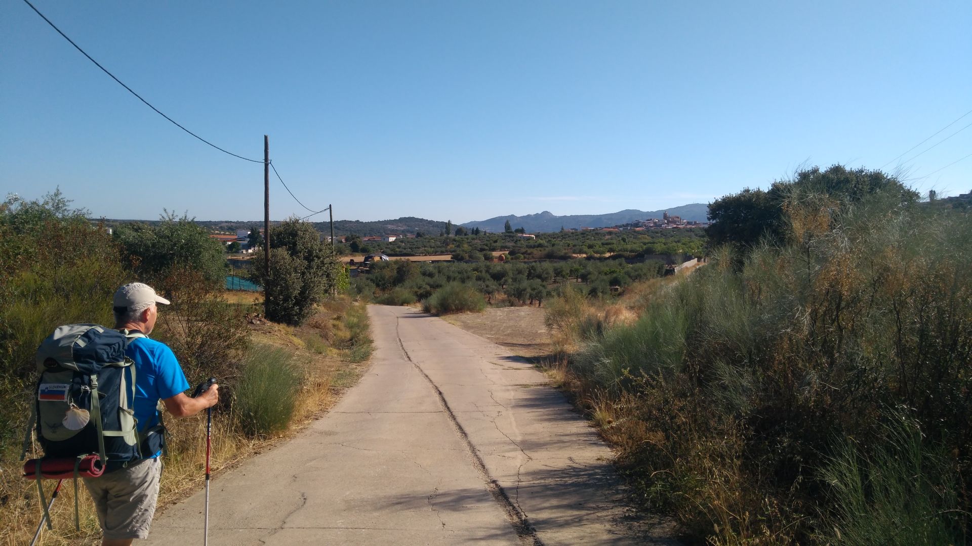 10. dan: a ze 10. dan je, cas pa res hitro tece. Danes naju je po poti ze kar malo zeblo, bo treba iz ruzakov izbrskati debelejse obleke. Ne vem kaksna je bila zares temperatura, ampak v napovedi pise 14 stopinj, kar je ze kar hladno. Jaz ze dva dni spim v spalki, Pavel pravi da si jo bo danes pripravil tudi on. Ko je posijalo sonce in naju malo pogrelo je se vedno prav hladno pihalo. Pokrajina se ob poti pocasi spreminja, zapustila sva ravnino z nasadi trte in oljke. Zdaj so na obzorju hribcki, tudi pot se je danes ves cas postopoma dvigovala. Zemlja je bila ob poti neobdelana, videla pa sva tudi nasade necesa kar ne veva kaj je - morda kdo prepozna na slikah. Nekaj km pred Alcuescarjem so oznake obrnjene proti drazjemu hostlu ob glavni cesti stran od Alcuescarja. Se dobro da je bilo v prejsnjem albergu napisano opozorilo, drugace bi jim verjetno sledila. Do cilja je bilo samo 20km, po vcerajsnjih naporih sva bila oba malo zmatrana in je bila krajsa etapa prav prijetna. Ze pred vasjo sva slisala zvnonove, ki so vabili k masi. Prisla sva ravno ob 11h, ko je bila sv. masa in sva se je lahko takoj udelezila. Ravno prav, saj se je alberg odprl sele ob 12h. Danasnji alberg je spet v samostanu, vendar tokrat malo manj moderno urejen, tudi pravila so bolj stroga (vrata se zjutraj odprejo sele ob 7h). Zvecer imamo skupno vecerjo, zajtrka pa tukaj ne ponujajo - se dobro da sva nasla odprto trgovino in si lahko nekaj kupila. Po obilnem in odlicnem kosilu (zdaj ze kaksno besedo razumem - narocil sem sopa in pollo) sva oba kar dobro zaspala.