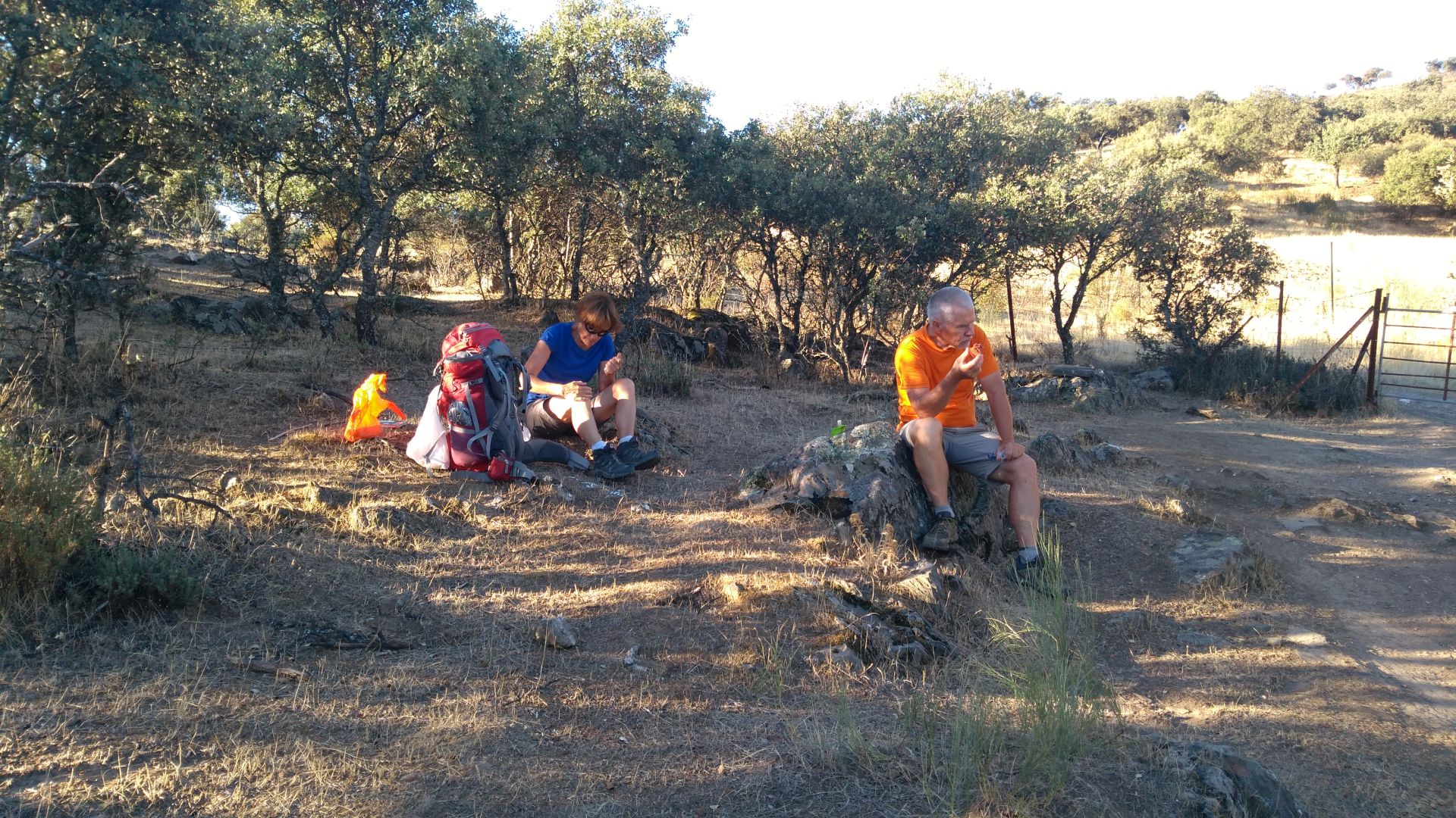 Danes sva ob 6.15 startala med zadnjimi v albergu, saj je vecina nacrtovala daljso turo, midva pa sva se odlocila da se ustaviva po 23km. Po nekaj km se je zacel precej strm vzpon. Tu sva srecala tudi avstrijko, ki je startala precej pred nama, a se je morala vrniti, saj so oznake ponoci slabo vidne - jaz si pomagam z gps-om pa vedno najdeva pravo pot. Hodili smo vzporedno z avtocesto, vendar dovolj stran da nas ni motila. Nekaj sence so nam dajale oljke, na mestih pa je tudi prijetno pihalo, tako da danes ni bilo tako vroce kot vceraj. Po malici sva zavila z glavne poti proti Riolobos, kjer v kampu ponujajo prenocisca za romarje. Po 23km so nama povedali da tam nimajo vec prostora, zapeljali so naju nazaj na glavno pot, kjer sva imela nato se 7.5km do naslednjega mesta z albergom. Tudi tu ni prav dosti prostora - samo za 9 ljudi, nas pa je trenutno 8.