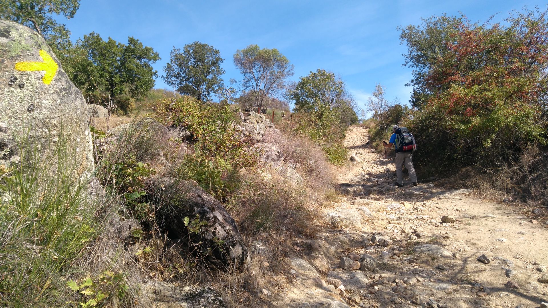 Zjutraj sva zacela proti Banos de Montemayor, vecinoma po cesti, le kak koscek je bilo malo obvoza po makadamu ob cesti, ves cas pa pocasi z vztrajno navzgor. V dolgih hlacah in dolgih rokavih sva v Banos z veseljem zavila v topel lokal in si privoscila krajsi pocitek. Od tu pa najprej vzpon do prelaza, nato pa nekaj casa navzdol po makadamu. Sledilo je nekaj ravnine, nato pa se vzpon do Calzade. Danes so podatki malo narobe, ker mi je uspelo ustaviti gps kaksen kilometer pred ciljem.