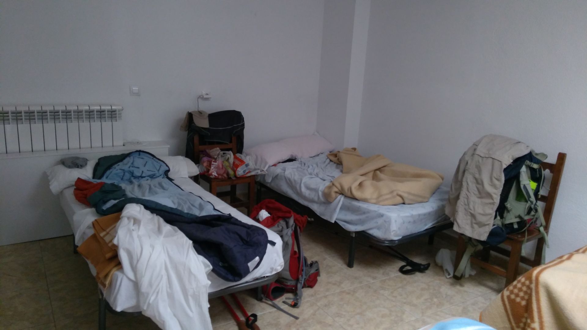 Alberg tu je precej majhen, le dve sobi po 5 postelj, pogradov ni. Sta tudi dve kopalnici, a zal brez wc papirja. Zraven je tudi bar, kjer sva dobila tudi kosilo, za zajtrk pa se nisva odlocila, saj ga ponujajo sele ob 7h, kar nama je malo prepozno. Jutri prideva do Salamance, nato pa se bomo poskusali ujeti z Bredama.