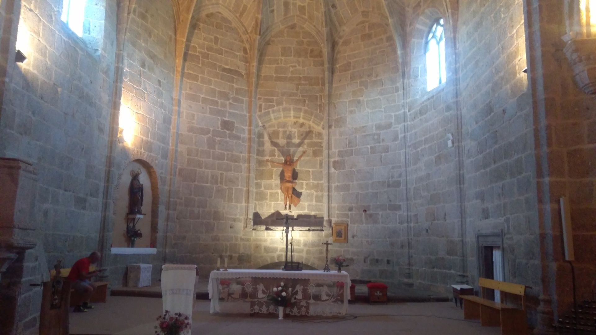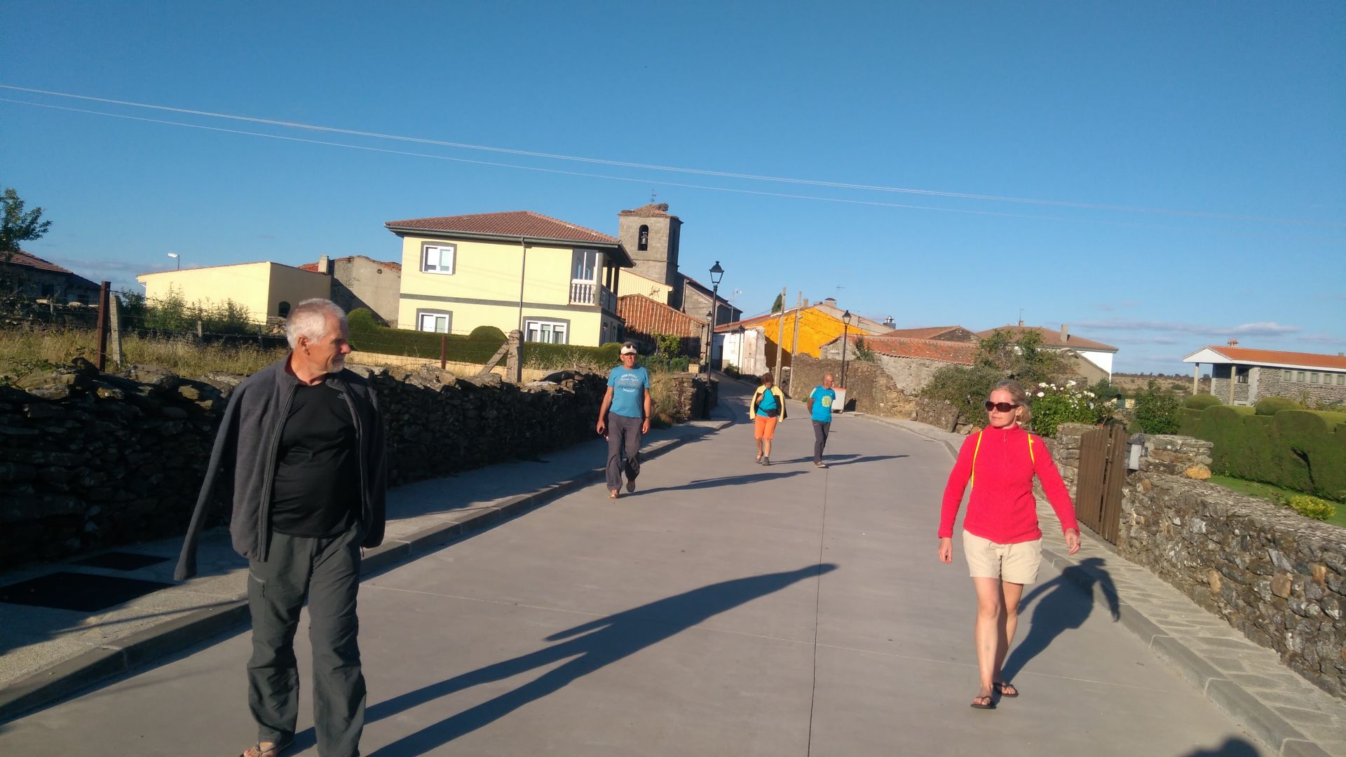 Vceraj sva v vasi videla 3 cerkve, popoldne smo dobili tudi voden ogled ene od njih. Povedali so nam, da so jo po pozaru obnovili - se vidi da je streha nova. Zelo so ponosni na svojega zupnika, ki oskrbuje 9 krajev. Pravijo da je zelo zaposlen, saj je obnovil cerkev in stavbo v kateri je alberg, postavil nekaksen muzej Via de la Plata, ki smo si ga prav tako ogledali. Menda je veliko naredil za to, da je Via de la Plata zazivela, organizira pa tudi romanja po celi Evropi za vascane. Zvecer se nam je z malo zamude uspel pridruziti pri skupni vecerji v albergu. Ta je bila kar pozno - ob 20h30, zato smo jo vsi ze nestrpno cakali. Dobili smo solato z ribami, krompir in trdo kuhana jajca, za sladico pa se kompot.