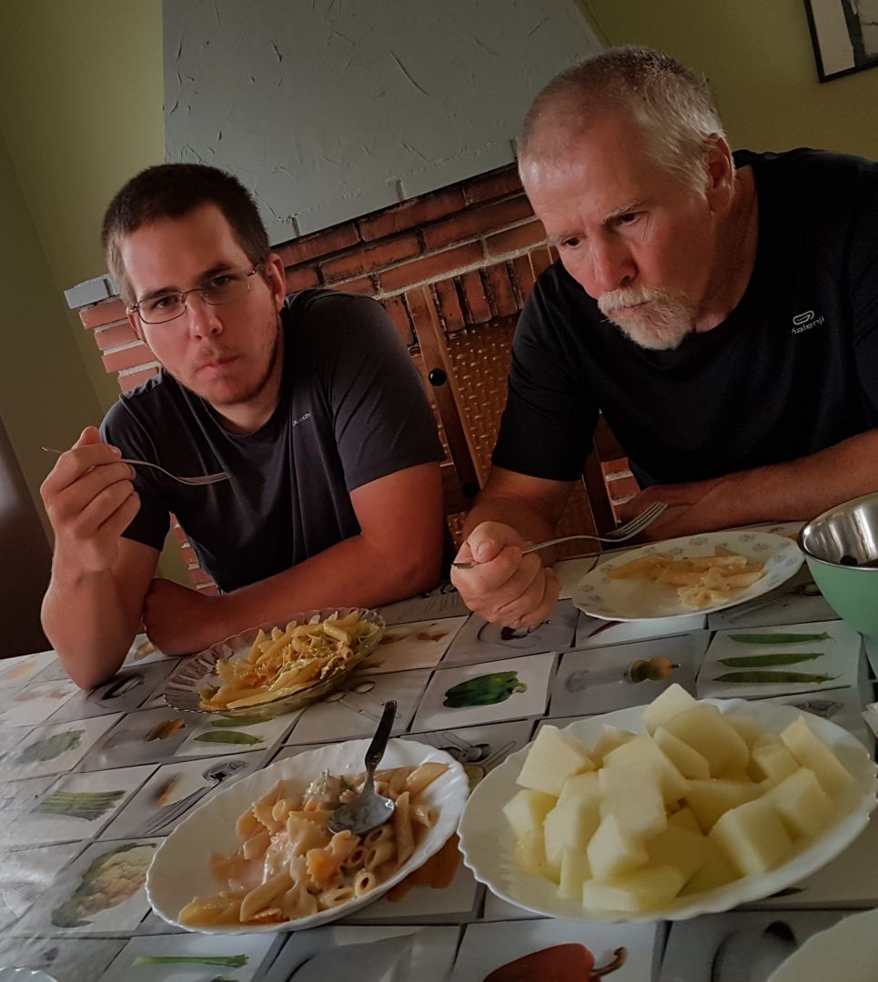Alberg je tukaj kar prijeten - ima dobro opremljeno kuhinjo in celo pralni stroj. Ker je nedelja ni bilo oskrbnika - denar smo vrgli kar v nabiralnik, stempelj pa smo dobili v restavraciji kjer smo jedli kosilo. Popoldne smo oprali dve rundi perila, jaz pa sem prek mobitela sodeloval na programerskem tekmovanju. Zdaj BredaI kuha makarone za vecerjo, zraven pa bomo imeli grozdje in odlicno belo melono. Za zajtrk pa smo si ze po poti kupili sendvice.