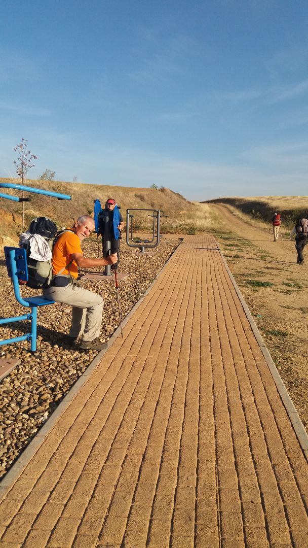 Danes zjutraj smo imeli v albergu skupen zajtrk - skuhali so kavo, na voljo je bil tudi kakav, za jest pa popecen kruh z marmelado. Ob pol osmih, ko smo zaceli s hojo, v mestu ni bilo tako hladno, zacel sem s hojo v puloverju, vendar sem ze po enem km dolocil da je prevroce in si ga slekel. Iz mesta je bilo prvih nekaj km po asfaltu, nato pa je pot zavila na makadam in kmalu smo spet hodili med prostranimi polji. Na dobri polovici smo se pomastili s palacinkami, ki so nam ostale od vceraj. Pot je vodila ob nasipu, na katerem domnevamo da bodo zgradili zeleznico. Zadnji kilometri do Montamarte so bili spet po cesti.