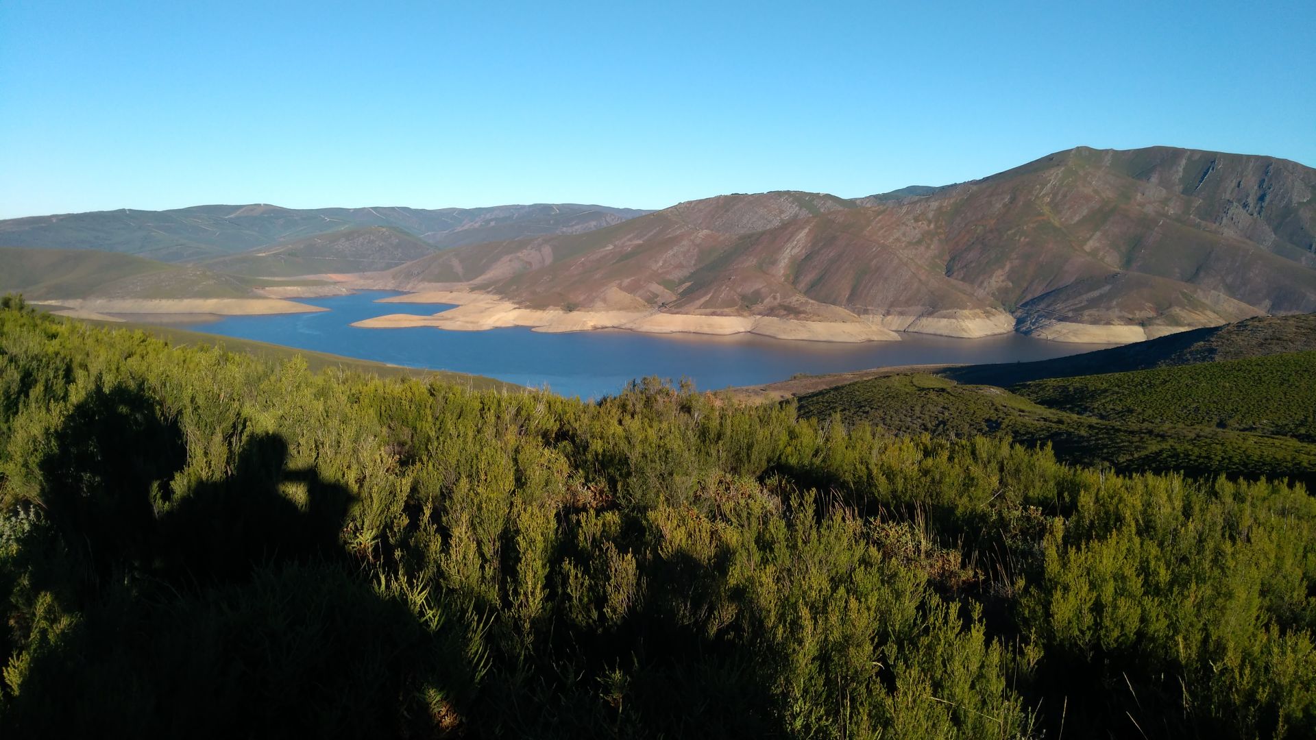 Sli smo skozi 3 vasi, v vsaki je bilo nekaj zapuscenih his, ena ali dve se naseljeni. O kaksni kavi niti sledu. Zato smo se ustavili v zadnji vasi na klopci pred vrstnimi hisami (zapuscenimi). Imeli smo se nekaj ostankov hrane od sobote, ki smo jih z veseljem zauzili. Kazalo je da smo na najvisji tocki, saj se je od tu lepo videlo ogromno jezero z nizkim vodostajem. Zacuda je v nadaljevanju pot se vedno vodila navzgor in navzgor. Tudi vrocina je bila visja kot prejsnje dni, sonce je prav mocno zgalo.