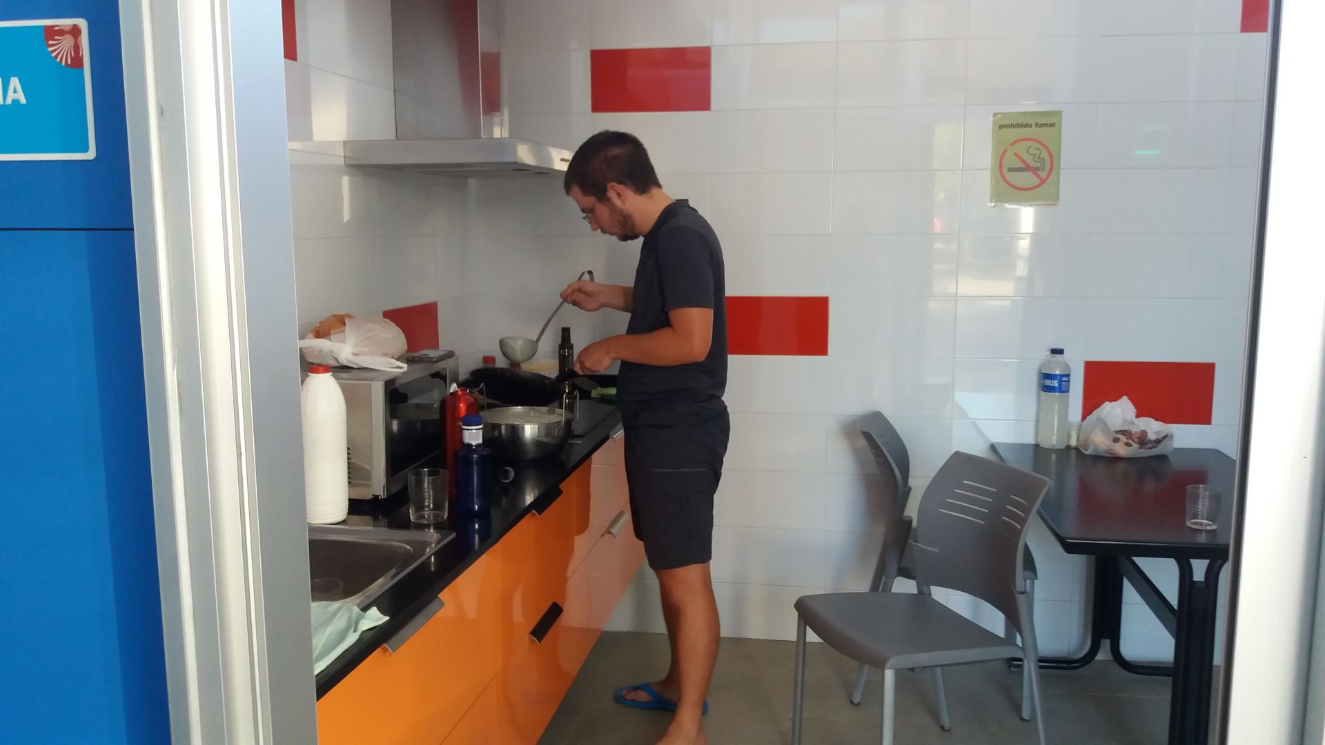 Za zajtrk smo pojedli se zadnje palacinke, ki so nam ostale od vcerajsnjega kupa. Se v temi smo zaceli pot, prvih nekaj km po asfaltni cesti. Potem se je pa zacelo. Siroko napravljena pot je vodila vedno bolj navzgor. Na vrhu se je pokazal naslednji vrh, na nekaterih mestih tako strmo, da so tudi najbolj mocni kolesarji morali sestopiti s koles. Tako je slo 10km vse do vasice Albergueria. Tam nas je Domen ze ves navelican, sezut in osvezen z aquariusom pricakoval. V baru je na tisoce jakobovih skoljk s podpisi in zastavicami mnogih drzav. Lastnik alberga in bara je bil nekam mrk in BredaI ga je skusala razsveseliti s slovensko zastavo in takoj jo je obesil nad pult. Podpisla je tudi skoljko in jo dodala med zbirko. Po pocitku z malico smo se prav veselili poti navzdol. Utrujene zenske nozice so se na vso moc upirale strmemu spustu, ki je kar trajal in trajal. Minilo je obljubljenih 19km, o vasici pa ne duha ne sluha. Do nje smo prisli po 22km. In za zakljucek se malo v hrib do nasega alberga, ki je spet lep, steklen (prijetno vroc) in ima v kuhinji samo kozarce. Vsaj restavracija je bila tik ob albergu, kjer so nas obilno nahranili za 9 evrov. Nato pa smo morali obesiti se veliko goro v pralnem stroju opranega perila, zasedli smo vse pripravljene strike in dodali se svojega. Ker nas je v albergu samo 6, pa imamo svojo veliko sobo.