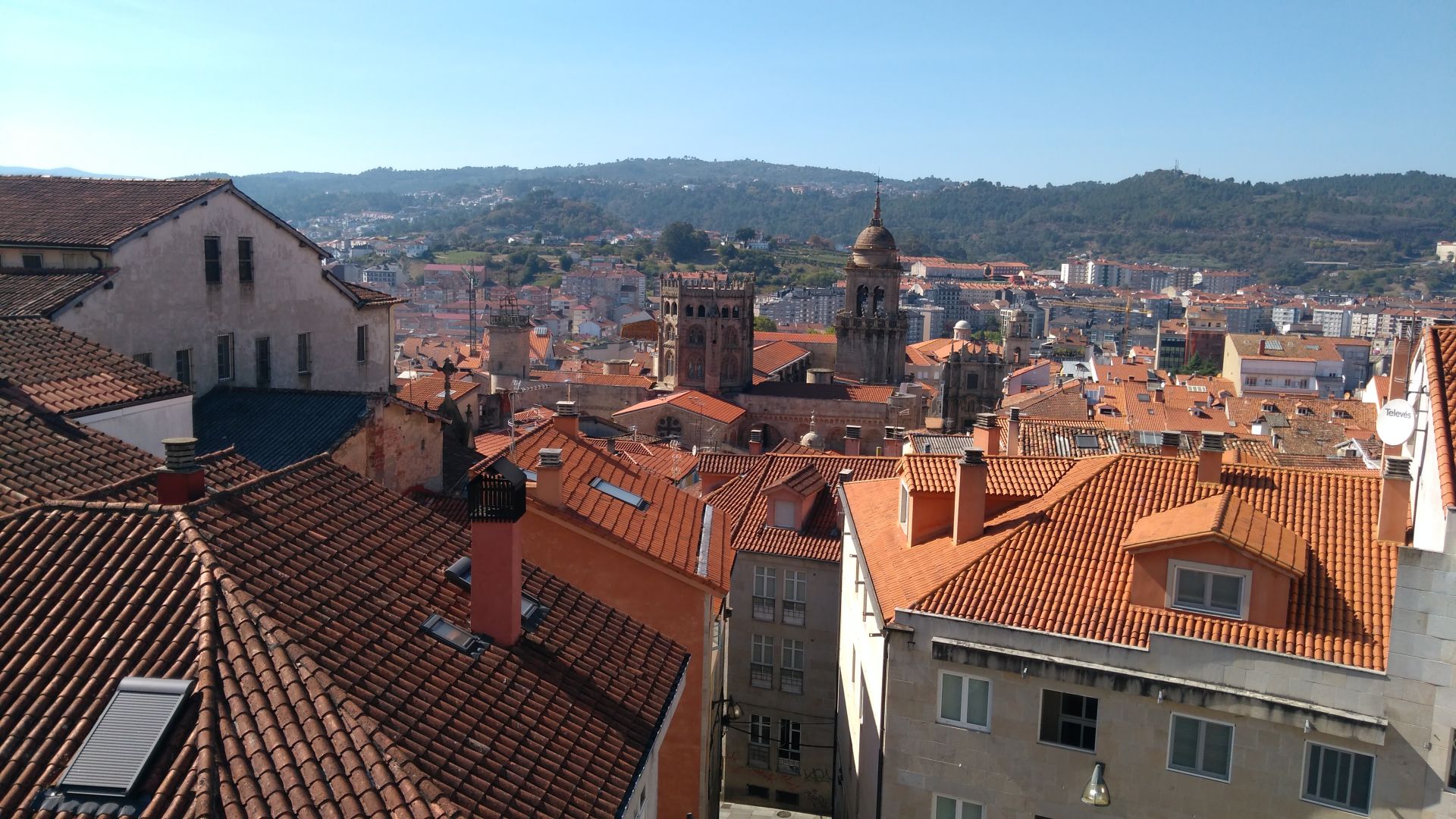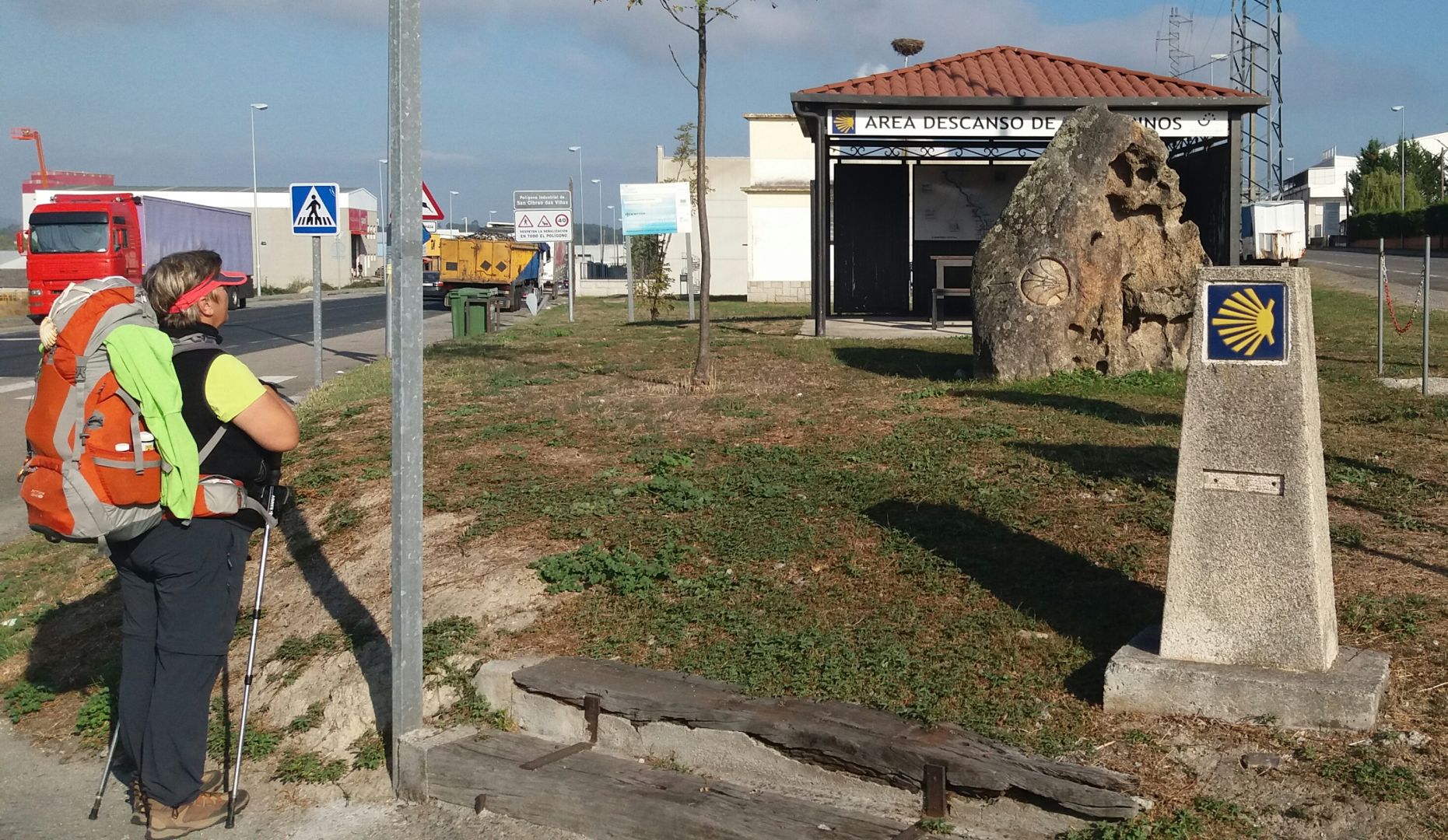 Pot smo zaceli v megli s kratkim vzponom po asfaltu. Megla nas je spremljala vecji del dopoldneva, tako da vsaj vroce ni bilo. Nismo vec hodili po gozdu, ampak smo nadaljevali po asfaltu skozi vec manjsih naselij. Prvi postanek je bil na 9km v vasi ob asfaltni cesti - v baru smo si privoscili tortilijo in rogljicek, zraven pa smo dobili se dva kroznika piskotkov. Tako smo si kar opomogli za nadaljevanje poti po asfaltni cesti. Od tu dalje so si pocitki ob asfaltni cesti sledili na vedno krajse razdalje, zato je Domen oddirjal naprej. Ze kaksnih 10km pred Orensejem se je zacela industrijska cona, ki je najbolj nadlezen del vsakega vstopa v vecje mesto. Bredi sta v vsakem bifeju vprasali, ce je alberg ze blizu - vedno je bil se malo naprej po asfaltni cesti. V mestu je bilo do alberga potrebno pretrpeti se 2km vzpon po asfaltni cesti.