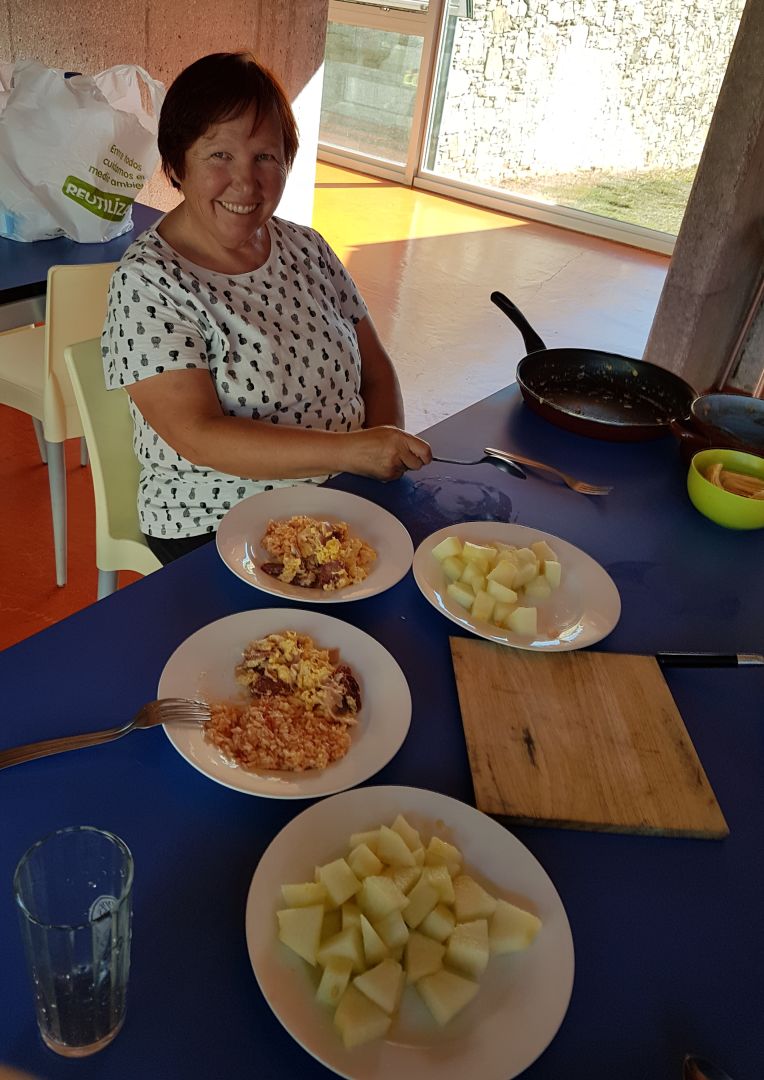 Alberg stoji na krasnem gricku z razgledom na dolino, v okolici je le manjsa vas brez barov ali trgovine. Za kosilo smo skuhali vse kar je bilo na razpolago - ena cebula, malo riza, en paradiznik, nekaj jajc in salame. Pa se dve jusni kocki smo nasli za juho - pa smo se vsi dobro najedli.