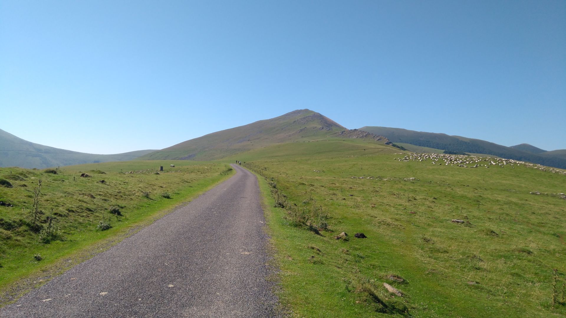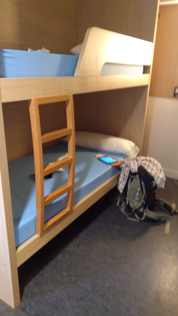 Sosed me je zbudil pred 6 uro, tako da sem odšel med prvimi že pred sedmo. Cesta se takoj iz vasi postavi pokonci in se samo včasih malo položi do vrha (skoraj 22 km). Če se spomnim, kako sem pred 12 leti kar zletel čez Pireneje, sem danes šel bolj počasi in so me drugi prehitevali. Zjutraj je bila megla, ob 9h pa se je zjasnilo in sem imel lep razgled, ki ga prvič nisem imel.