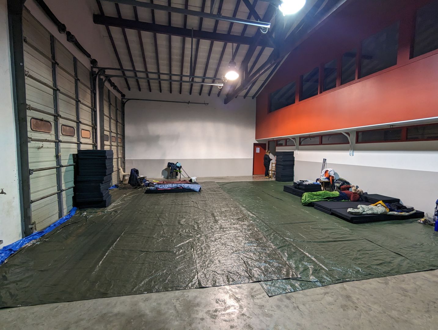 Ko sva včeraj zvečer prišla v Saint Jean, sva si najprej štempljala credential v romarski pisarni. Tam so nama povedali, da so vsa prenočišča že zasedena. Kot rezervo pa omogočajo spanje v gasilskem domu. Na voljo so blazine za spanje na tleh in kopalnica. Gasilskih avtov pa žal ni bilo. Bila sva midva in še dva Korejca. Moja spalka je odlična in mi je bilo prav prijetno, Pavel pa pravi da ga je malo zeblo.