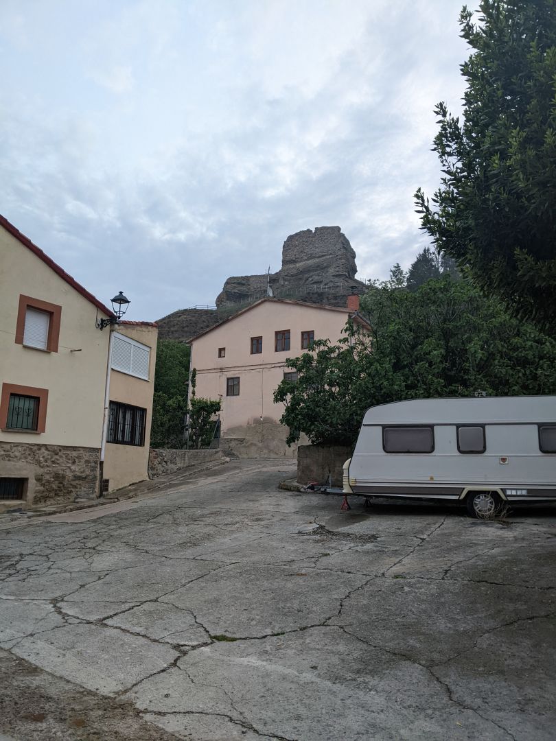 Včeraj sem se ustavil takoj v albergu na začetku Belorada, ker je začelo deževati. Tudi zvečer je bilo enako, tako da si nisem ogledal mesta, pa tudi k maši nisem šel. Zjutraj ni več deževalo, čeprav je bilo napovedano za 9 uro. Romarji ne maramo dežja, ker ni prijetno hoditi v pelerini. Vse dopoldne je bilo oblačno in prijetno za hojo, ker smo šli v hrib na 1200 m (Monte de Oca). V resnici ni tako strmo kot kaže graf, samo na začetku, vse skupaj je 400 m razlike. Je pa vseeno dovolj visoko, da sva z Bredo leta 2013 hodila med snežinkami.