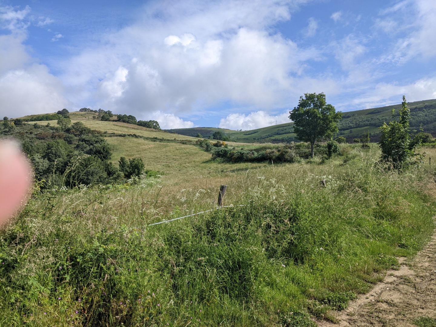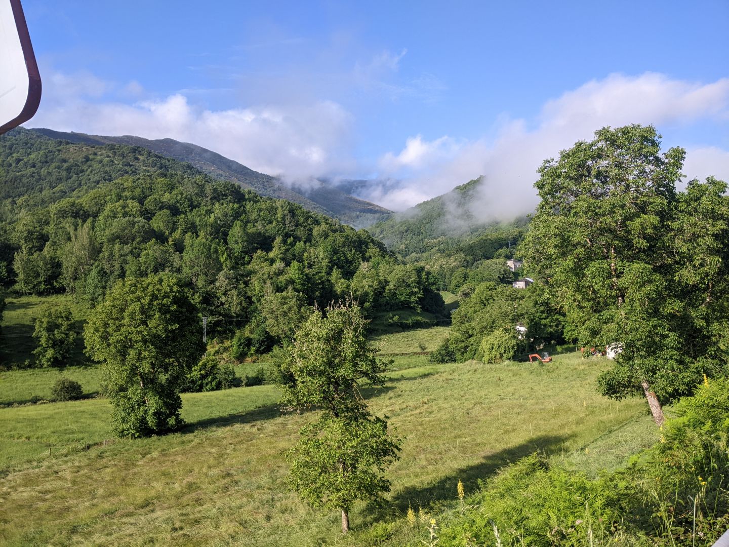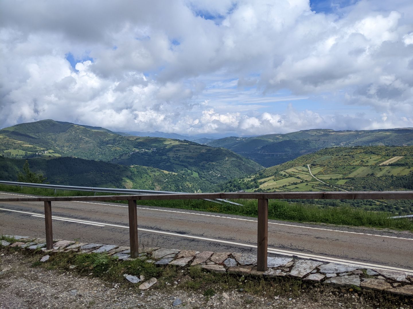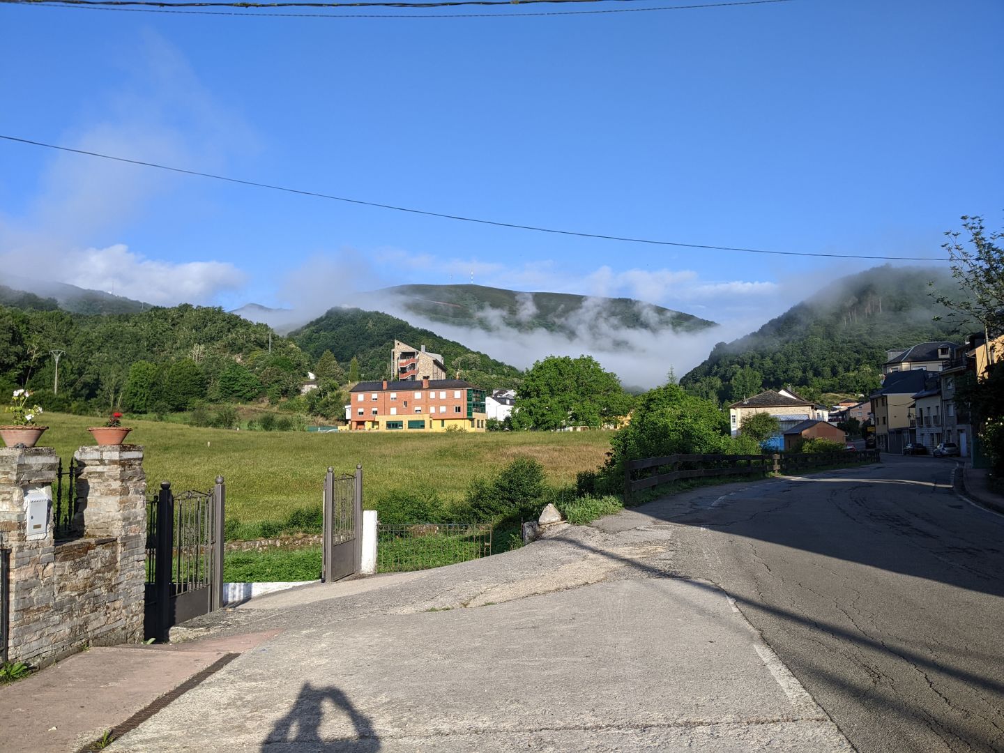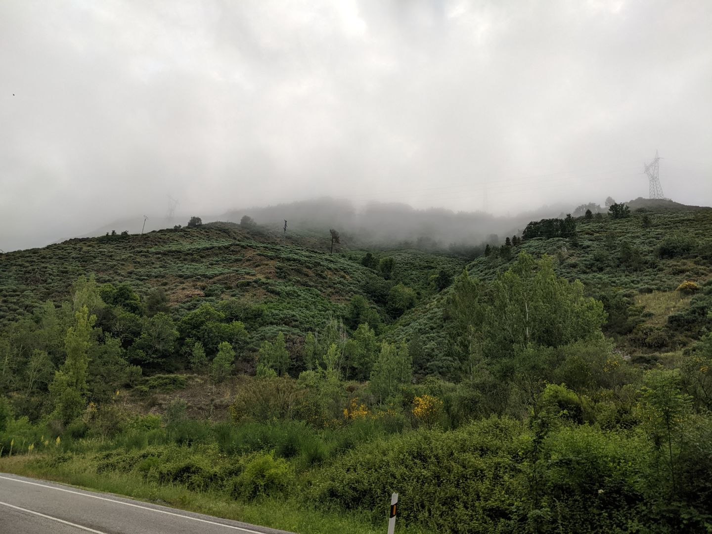 Ker sem bil sam v sobi, sem se zjutraj hiti odpravil. Zgledalo je, da bo slabo vreme. Po hribih so se vlekle megle. Proti osmi se je le zjasnilo, ni pa bilo še vroče, tako da se je dalo hoditi. Prvih deset km je bilo podobnih včerajšnjim, se pravi ob glavni cesti, nad nami pa večkrat avtocesta. Avtocesta je nekje speljana kar nad vasmi, skoraj nad hišami. Po desetih km se začne pot vzpenjati proti O Cebreiru. Letos sem jo hitreje prehodil kot predlani, ko sem se ustavljal v vsaki senci. Pot je razdeljena na tri dele: do La Fabe, kjer je nemški alberg in se tam ustavljajo predvsem Nemci. Do tu je pot v redu, ker je po gozdu, naprej se pa odpre razgled, ker smo že visoko. Druga tretjina je do Lagune, kjer imajo tudi prenočišča, tretja pa do O Cebreira. Vmes pa smo že vstopili v Galicijo.