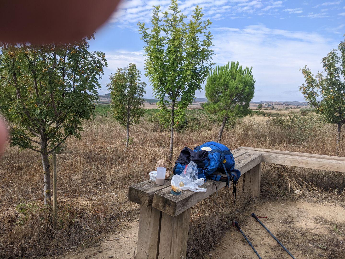 Romanje je čudno, toda do sedaj še nisem uspel priti k maši. Tukaj so maše v glavnem ob nedeljah. Včeraj sem prišel v vas ravno, ko so odhajali od maše. Danes sem mislil, da sem ozdravljen, in sem prišel v svojem običajnem tempu skoraj do Los Arcosa (13km), potem pa sem spet moral iskati grmovje, ki ga pa proti tej vasi skoraj ni, saj so sama žitna polja. Nekaj je že tudi vinogradov, pa si nisem upal jesti grozdja, čeprav sem se tega veselil. V Los Arcosa pa sem moral ohraniti tradicijo in popiti en pacharan. Upal sem, da bom danes šel do Viane, je pa več kot 30 km, zato sem se ustavil v Sansolu, kjer še nisem prenočeval. V albergu Karma sem bil prvi, pa še ni bil opoldne odprt, lastnik se je ravno prebudil, in smo 4 čakali še 1 h. Alberg je v zelo stari hiši, ob ogledu sta dva Avstralca obupala in šla v drug alberg. Ostala sva sama z Madžarom, ki sva bila že včeraj skupaj. Izgledalo je, da bova sama, pa še je do večera alberg napolnil. Pri večerji pa sva spet bila sama, ker so se ostali prekrasno prijavili. Bila pa je okusna in obilna, ko pravijo na komentarjih. Madžar ne pije vina, tako da je ves ostal zame.
