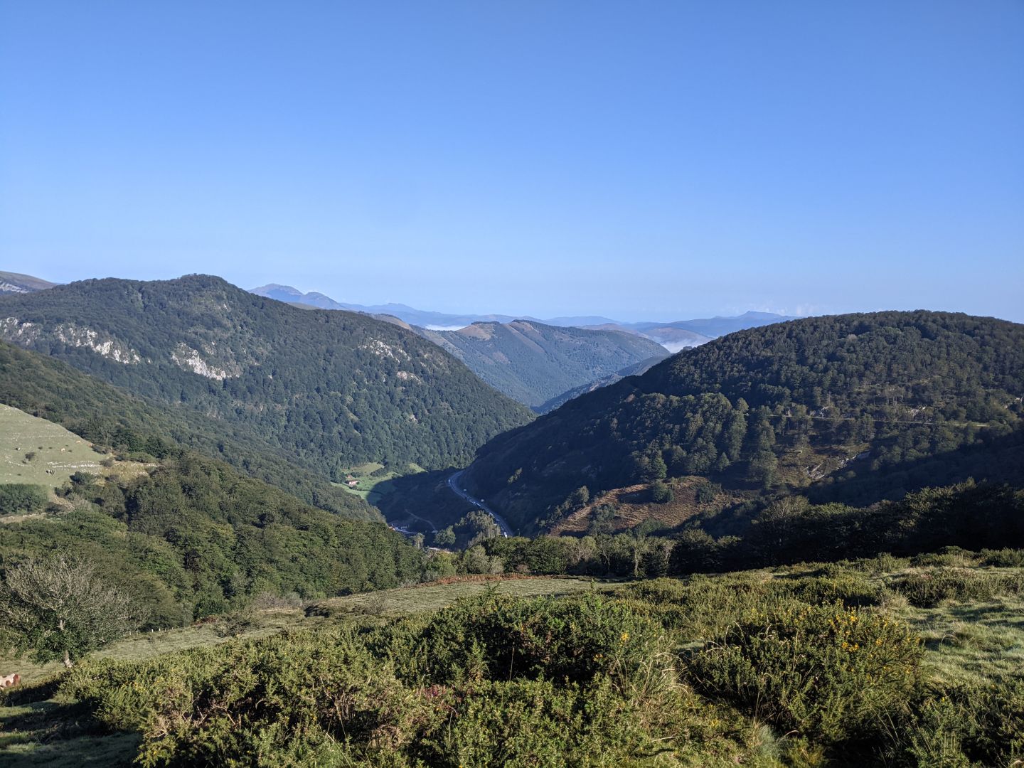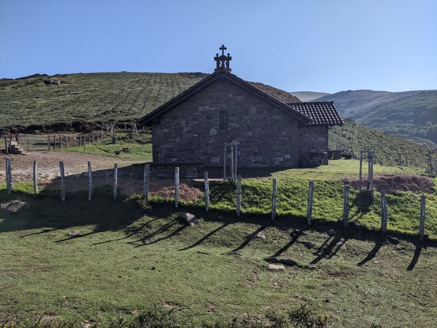Danes je lepo in sončno, pot pa štiri ure v glavnem samo navzgor. Je pa bila danes lepša, ker je lepo speljana v serpentinah in ne preveč strma. Tudi vroče ni bilo, ker smo hodili po gozdu vse do vrha, kakih 900 m, tam pa se je pogled odprl na okoliške hribe. Edini alberg je bil čez 20 km in naj bi vsi iz včerajšnjega alberga dobili prenočišče, ker je enako število postelj. S hribi smo zaenkrat opravili, je pa bilo bolj naporno kot čez Pireneje.