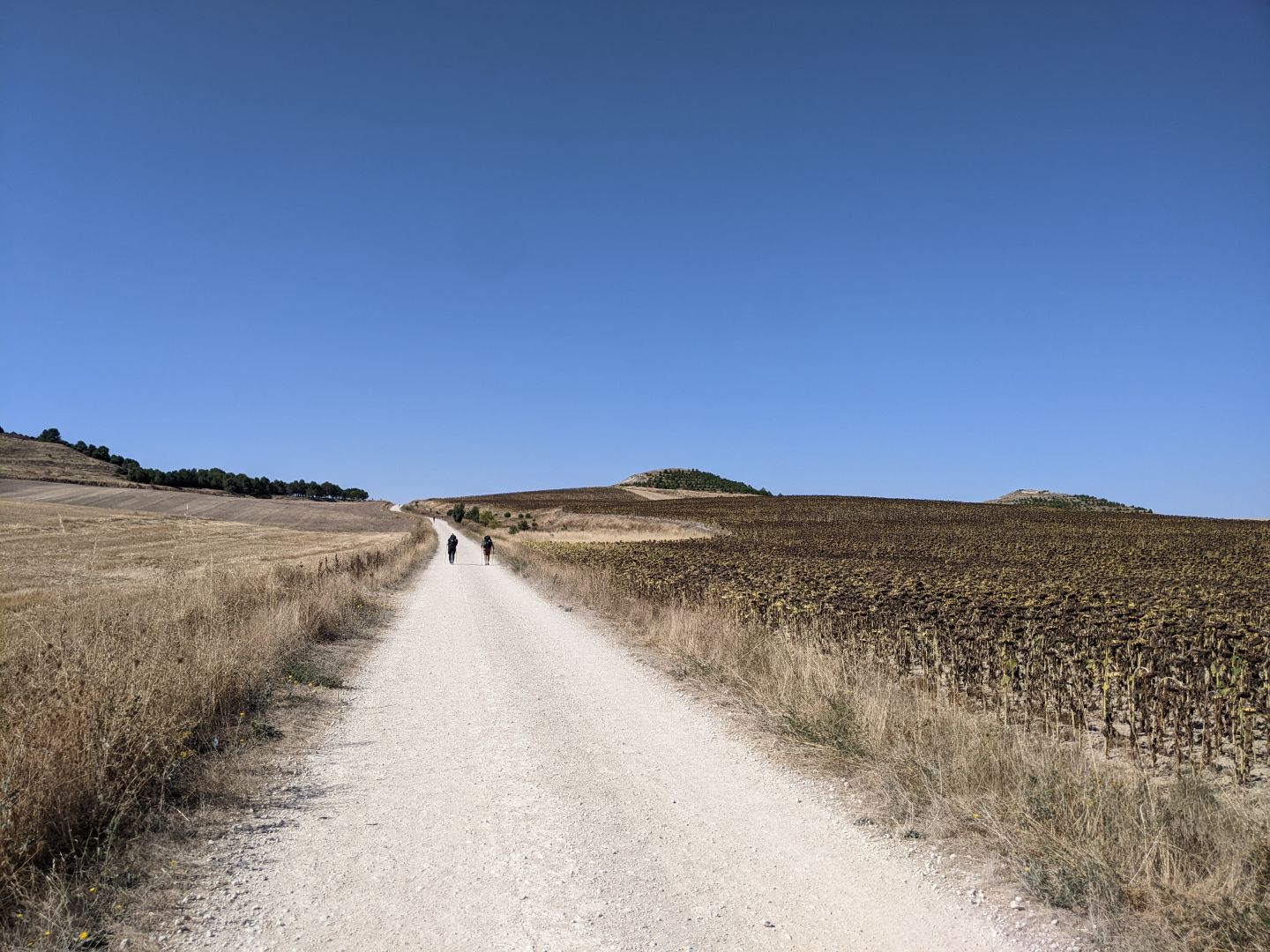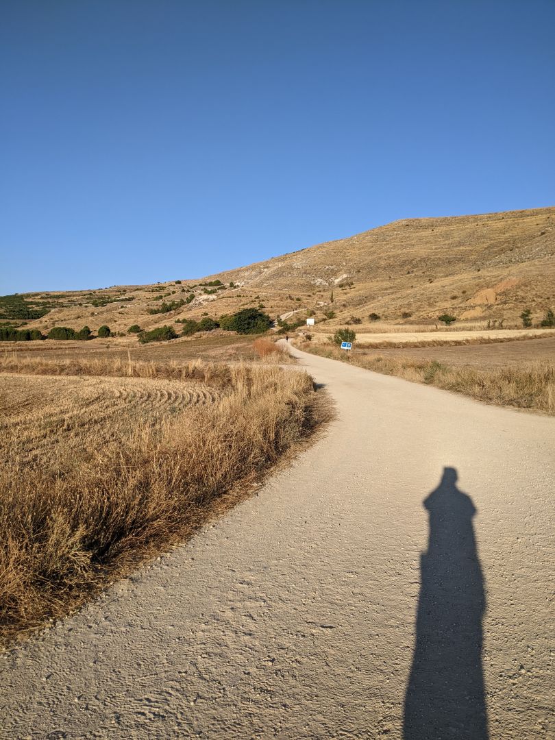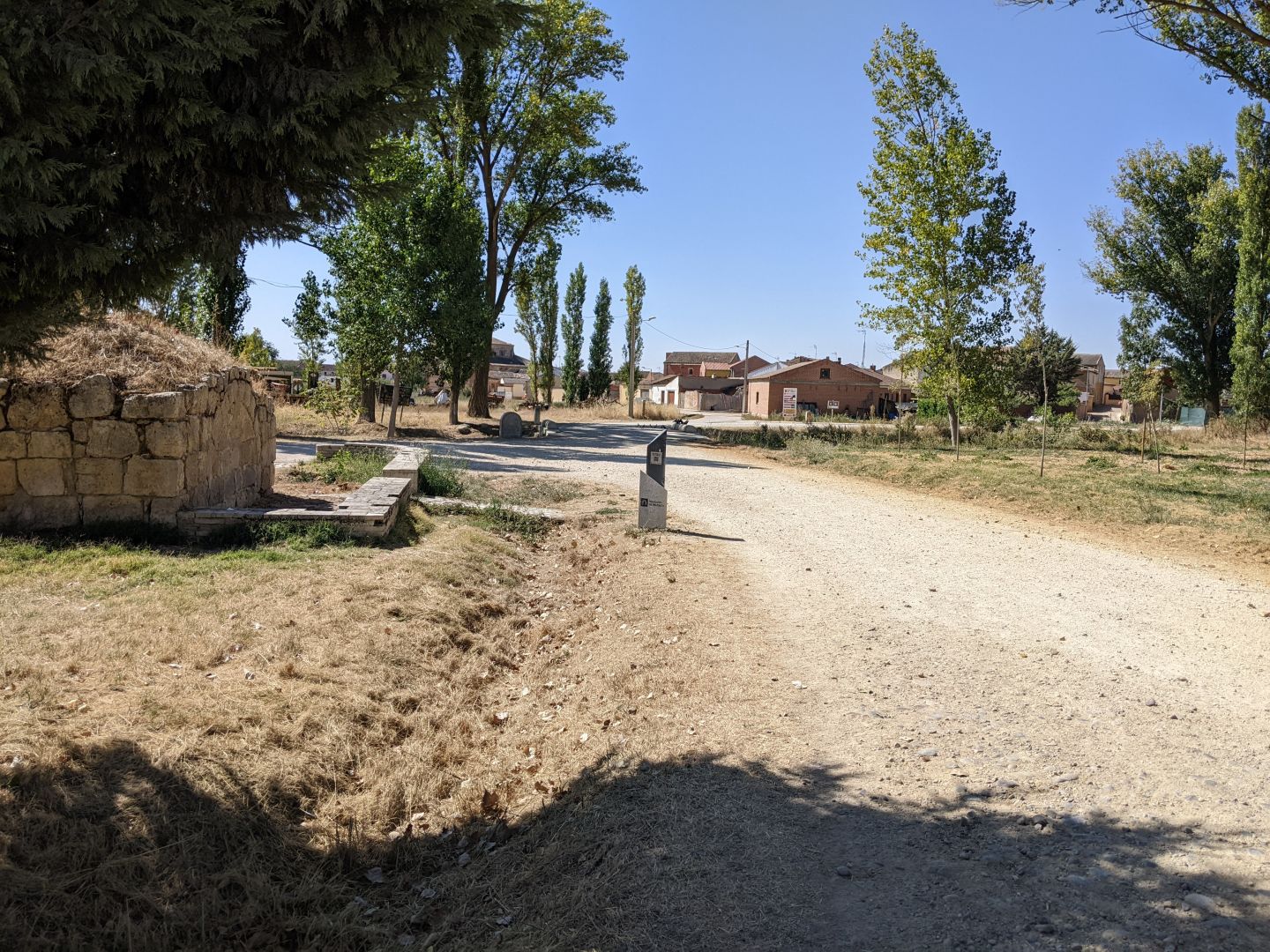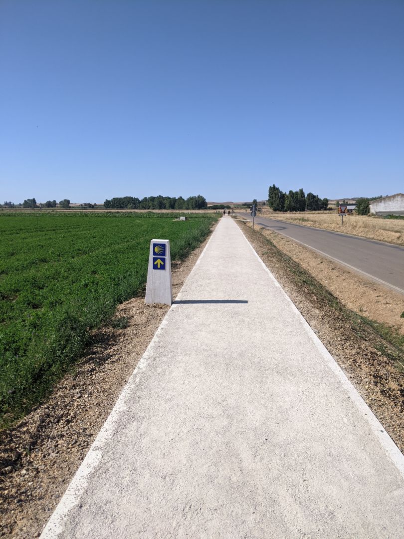 Kot kažejo km ob poti sem približno na pol poti. V temi sem šel iz alberga, dobro da so drugi imeli svetilke. Mislil sem, da je ne bom rabil, pa je do pol osmih še tema. Castrojeriz smo hitro prešli, ker je bilo vse še zaprto. Potem pride 130 m vzpon, po katerem se je zagnal avtobus Korejcev, vsi z maskami. Do vzpona me je zeblo, da sem imel rokavice, potem pa se je začelo ogrevati do 32 stopinj. V Itero de la Vega sem srečal moža Josipa in ženo Mileno z Bleda. Sta pa bolj turistična romarja, ker imata sobe rezervirane za pet dni naprej. Morda ju bom še srečal, ker sta odšla danes do Fromiste. Že nekaj dni je vroče čez 30 stopinj in še bo naprej. Tukaj je bazen, samo voda je mrzla.