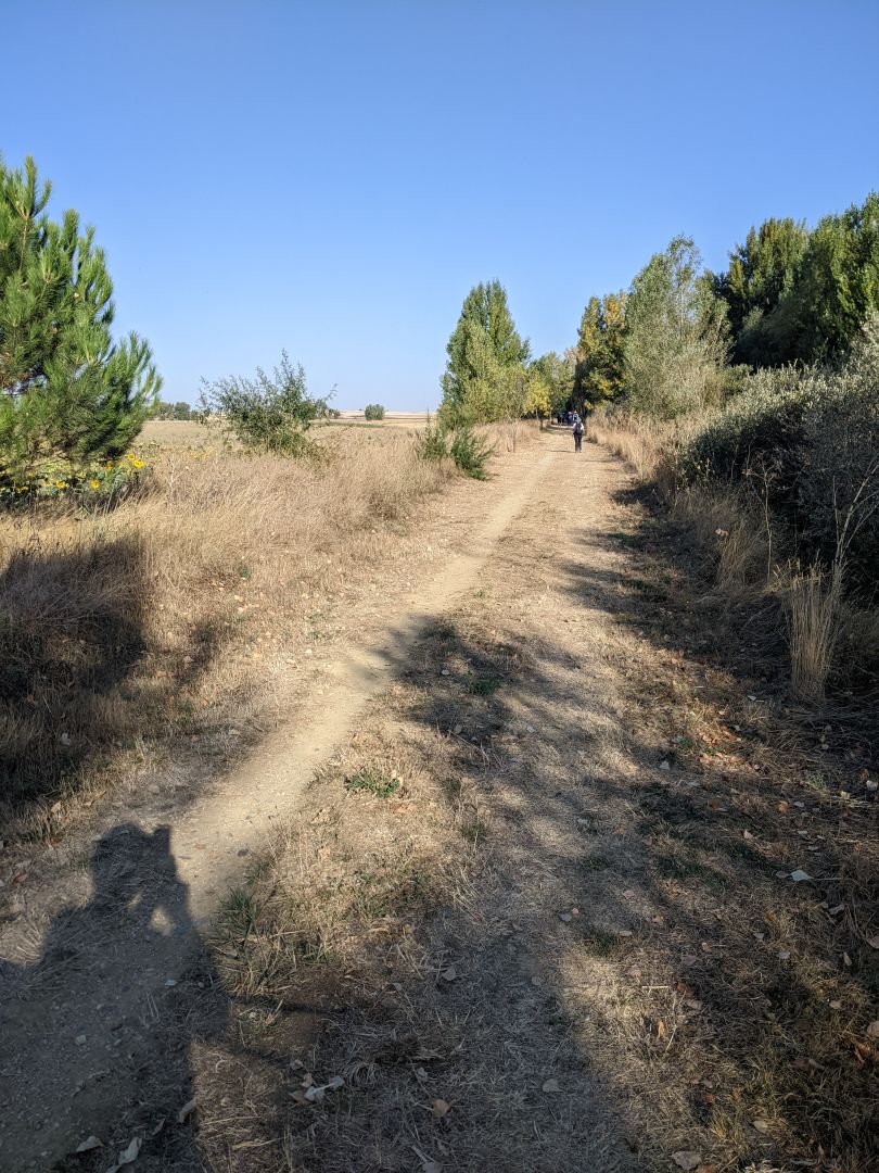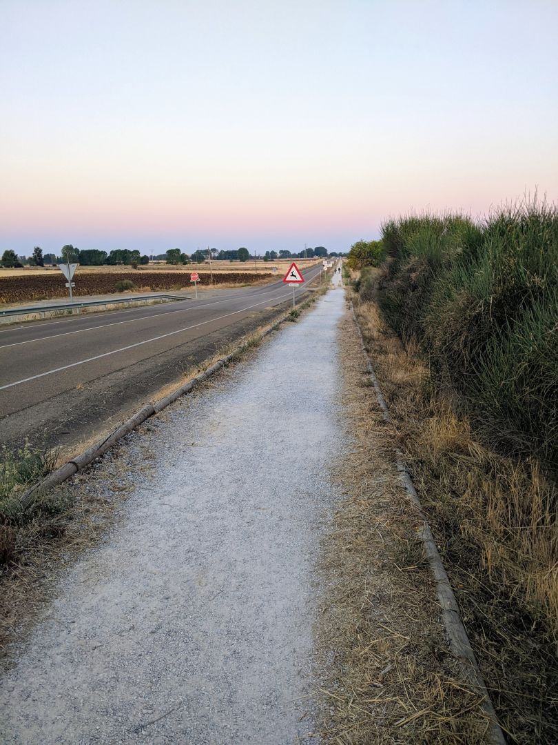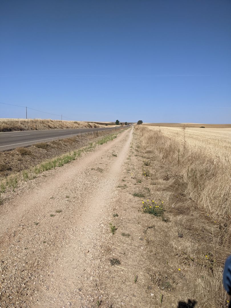 Zadnje dni je kar vroče, do 33 stopinj, tako bo še jutri, drugi teden pa napovedujejo dež in samo 16 stopinj. Kot se iz slik vidi, je bila danes pot skoraj ravna in ves čas ob cesti. Zato smo šli po alternativni poti, ki je speljana ob potoku, zato je bilo več sence. Na polovici so nas usmerjali na glavno pot zaradi del na cesti. Domačin nam je razlagal, da delajo nov most in se vseeno da naprej. Potem se je izkazalo, da asfaltirajo cesto in smo nekaj časa hodili po polju. Vse še je srečno končalo, samo da nam ni bilo treba nazaj. Po poti nisem srečal nikogar znanega, tudi blejčanov ne. Bom pa o dolgem času spet šel k maši, če bom našel, v kateri cerkvi je.