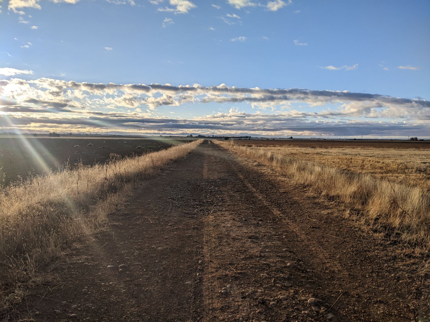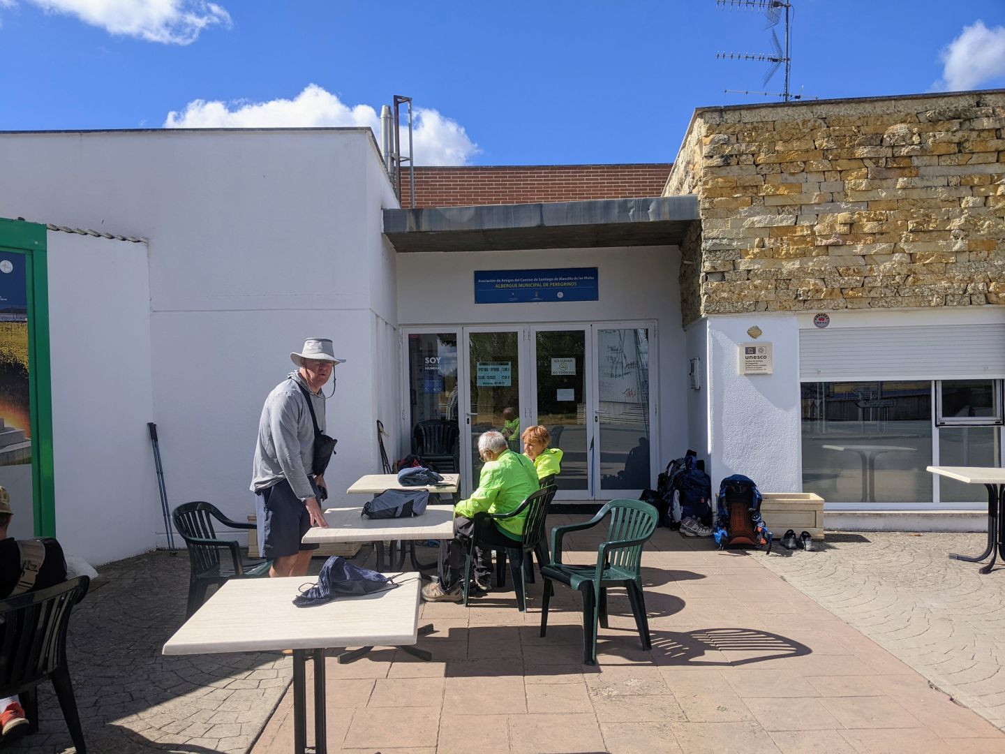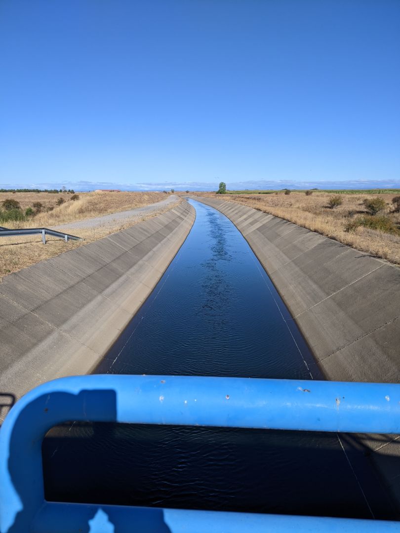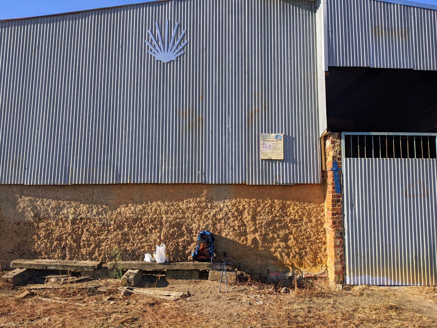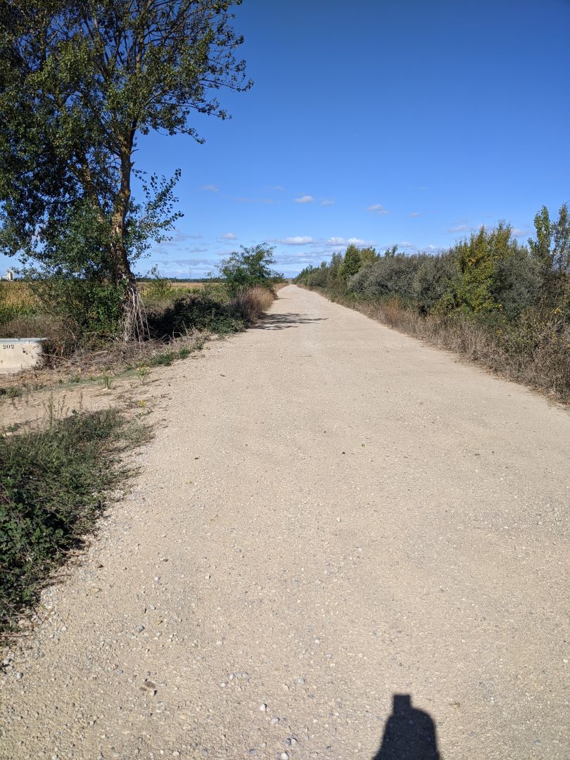 Danes je bila pot kot druga Meseta, še daljša, saj več kot 20 km ni bilo nič, razen koruze in pšenice in nekje na sredi en skedenj, da sem se lahko ustavil in nalival. Poti ne bi priporočil, ker je po cesti večinoma okroglo kamenje, da so med bolelo podplati. Zato sem tudi prej končal s hojo. Na vsej poti sem srečal samo dva kolesarja, dva konca in punca iz Singapurja me je prehitela. Sem v začasnem javnem albergu, ker starega obnavljajo.