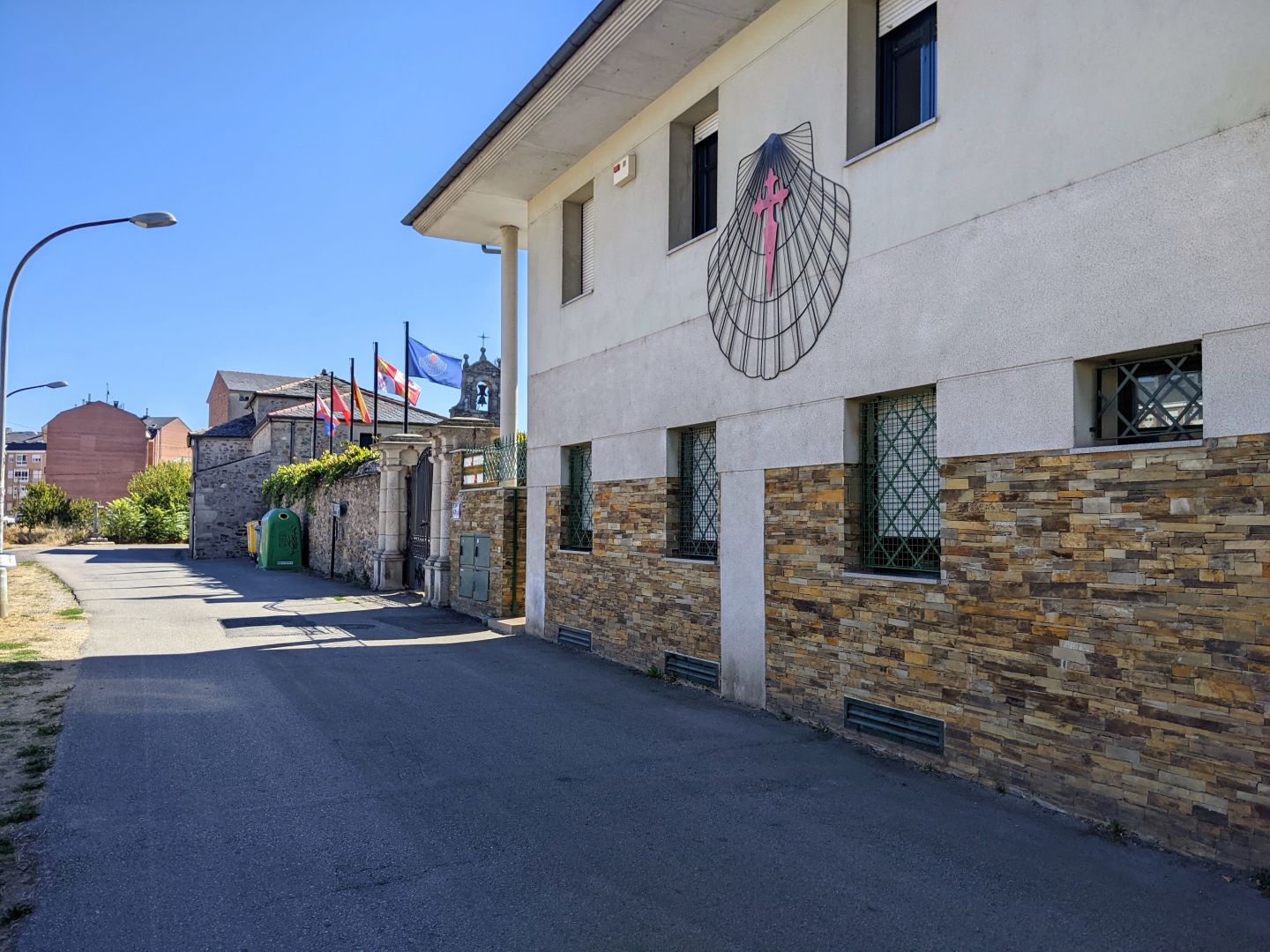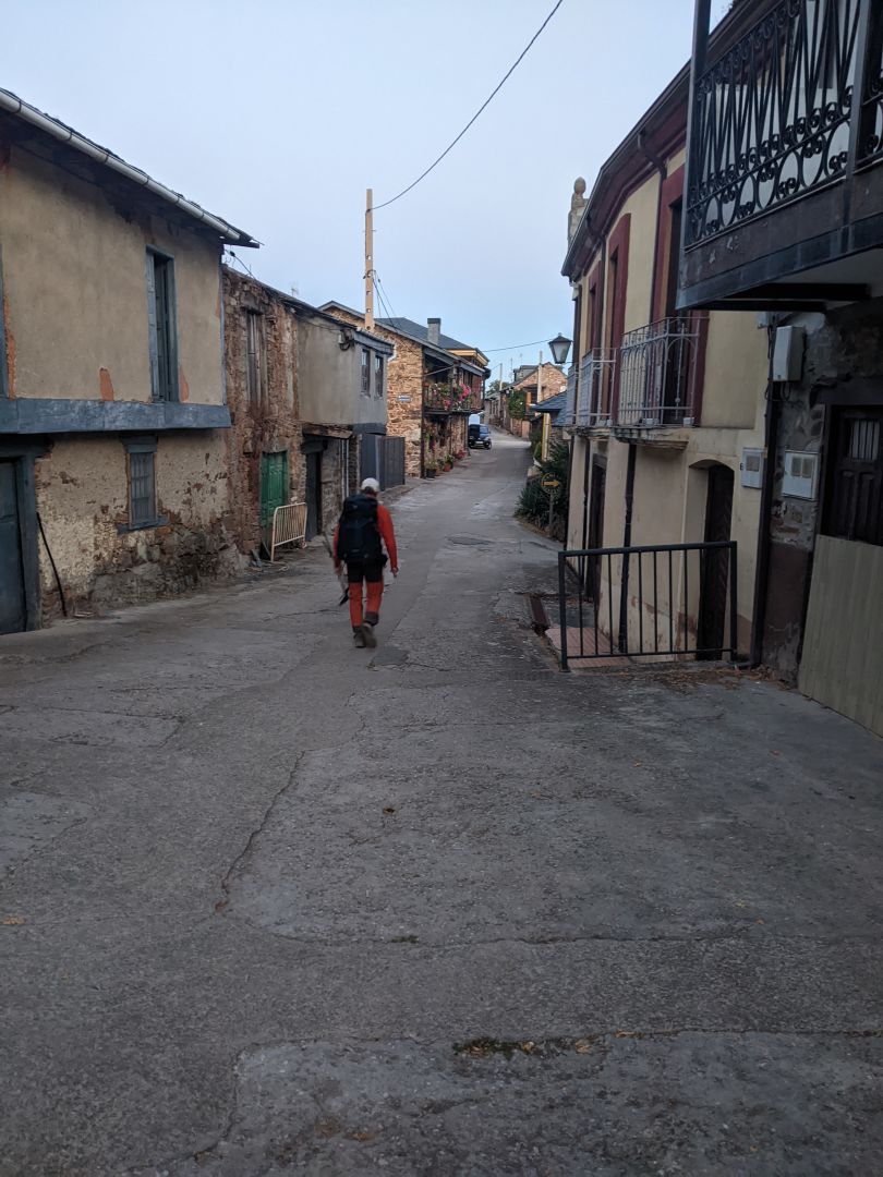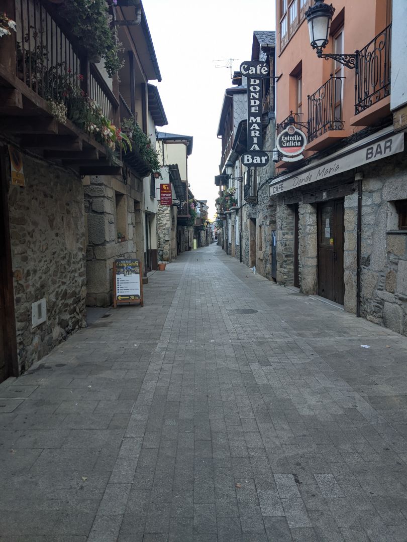 V alberg sem prišel ob pol dvanajstih (odprejo ga ob 13h), seveda sem bil prvi. K sreči imajo tuše in WC zunaj na vrtu, ki je odprt, tako da sem vse kar je treba postorili, predno je prišel kakšen romar. Za prijavo imajo že kodo(ne vem kako se reče tistemu čudnemu kvadratu), toda dosedanja ni bila prava. Od tu naprej imajo pilgrimpass, tako da sem moral podatke na novo izpolnjevati.