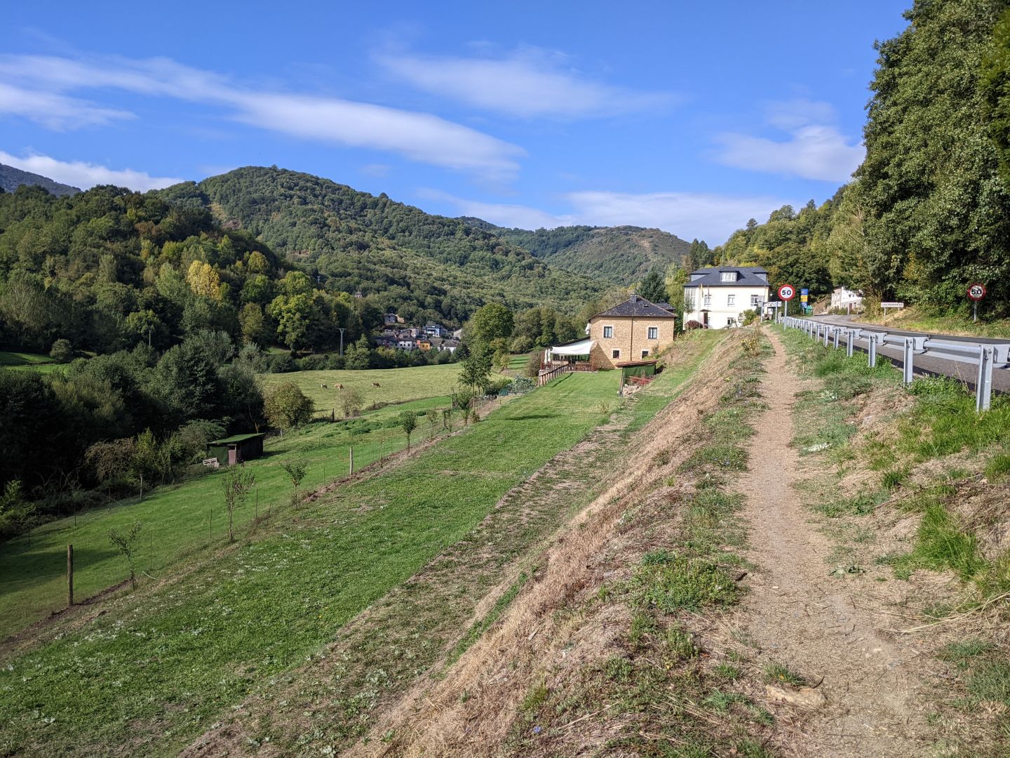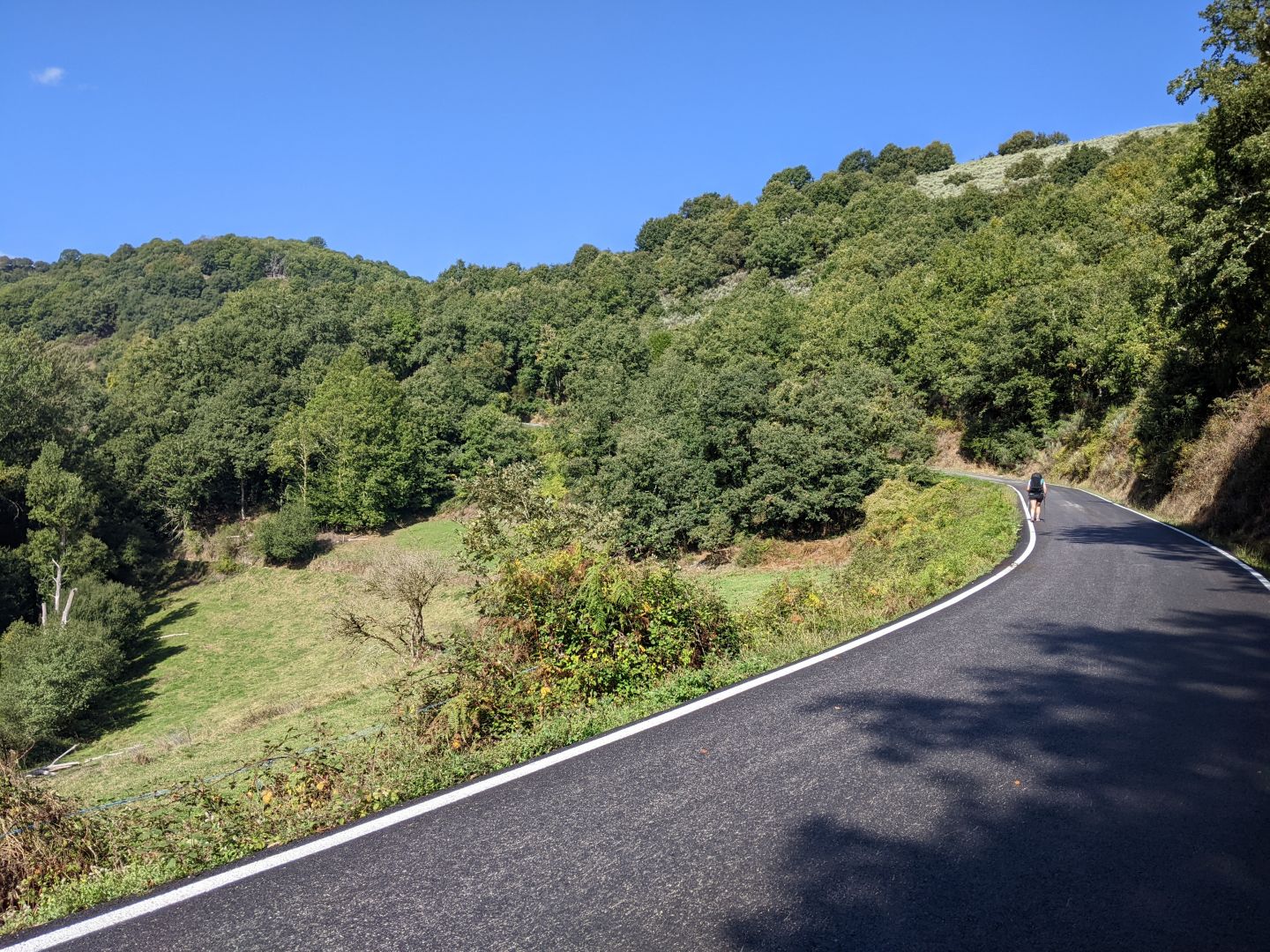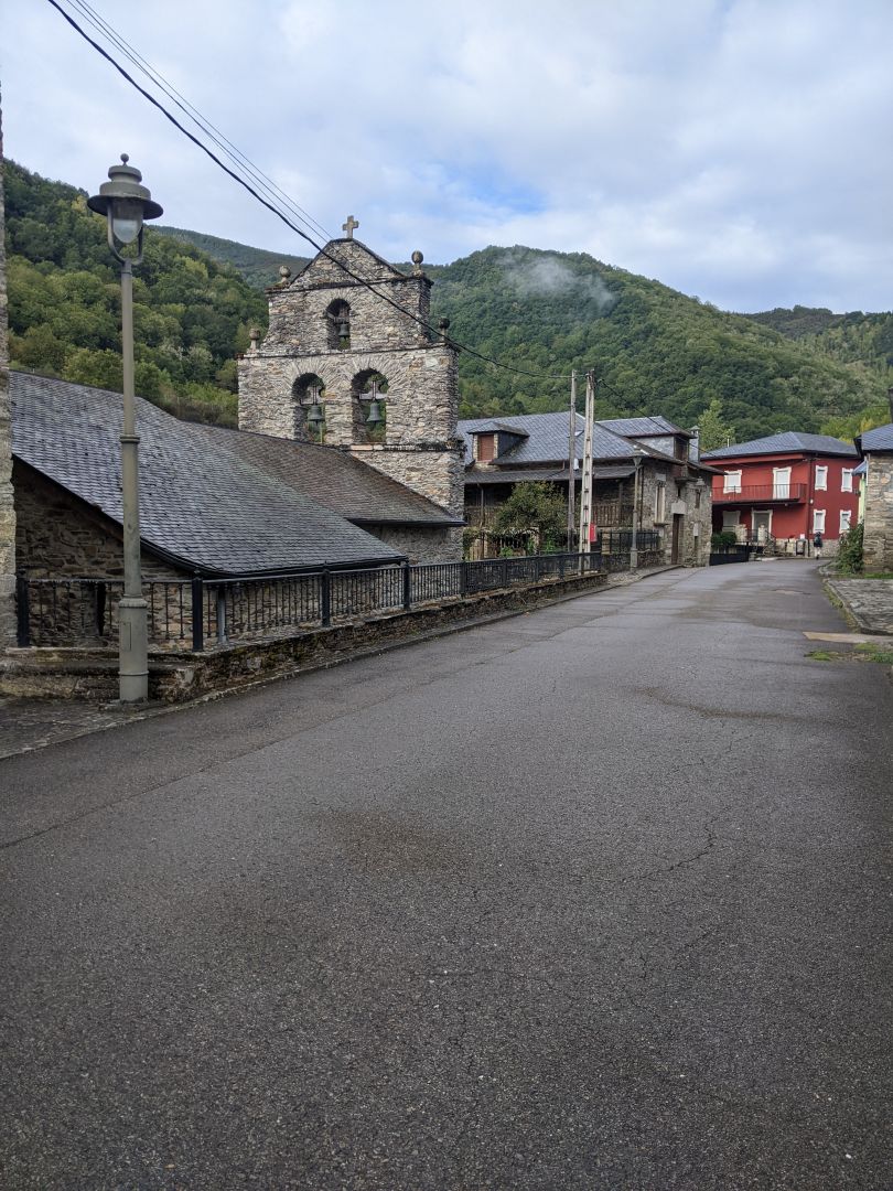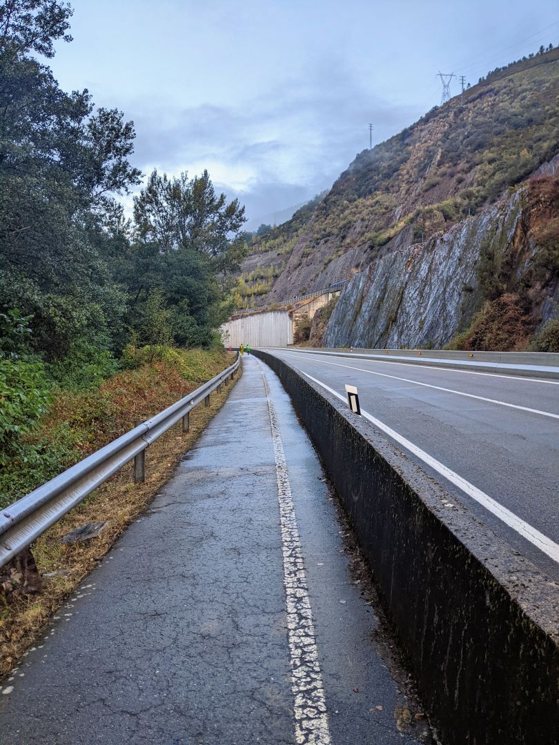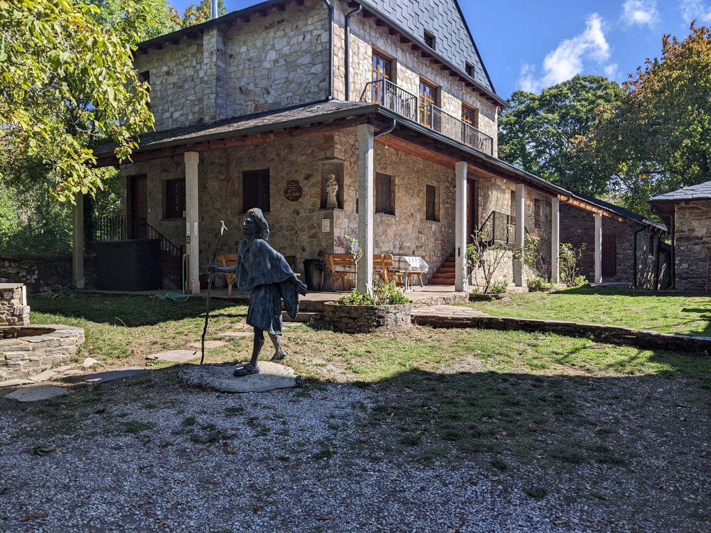 Zbudili smo se v deževno jutro in si oblačili pelerine, tisti, ki smo jih imeli. Odšli smo še temi, držal sem se dveh Špancev, ki sta imela svetilke in navigacijo. Smo se pa vseeno po mestu zgubljati. Deževalo je kake dve uri, potem pa smo sušili pelerine na sebi. Več kot polovico poti smo hodili po stari cesti, nad nami pa je bila avtocesta. Zadnjih nekaj vasi pred vzponom, je veliko albergov, za tiste, ki si premislijo, da bi še isti dan odšli O Cebreiro. Kot se vidi iz grafa, se je pot ves čas vzpenjala, toda ne prehudo. Vzpon je bil le zadnje tri km do La Fabe. So pa od predlani vsaj pot popravili, da ni več tako skalnata. Na La Fabo imam lepe spomine, pa sem pozabil zakaj. Najbrž je bil sprejem drugačen kot danes.