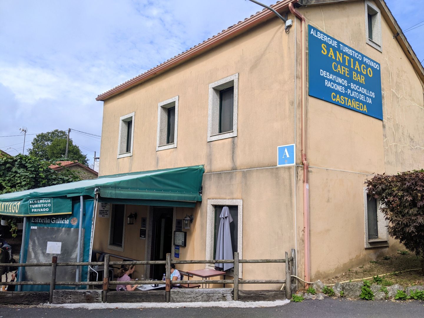 V alberg sem prišel kmalu po eni uri. Tu so samo štirje pogradi, zasedeni so trije, dva starca in ena mladenka. Ker je alberg čisto ob caminu, sem šele danes videl, koliko romarjev v resnici hodi. Še po četrti uri so hodili v vrsti in večina se je ustavila ravno v tej restavraciji.