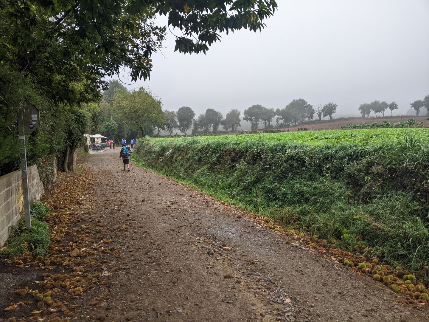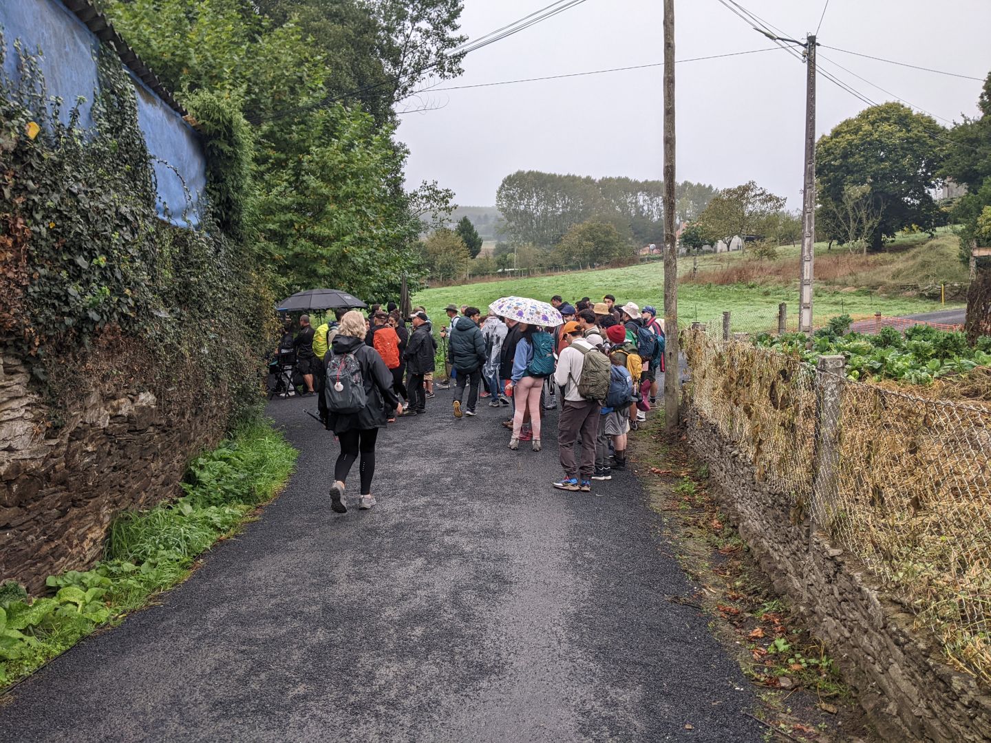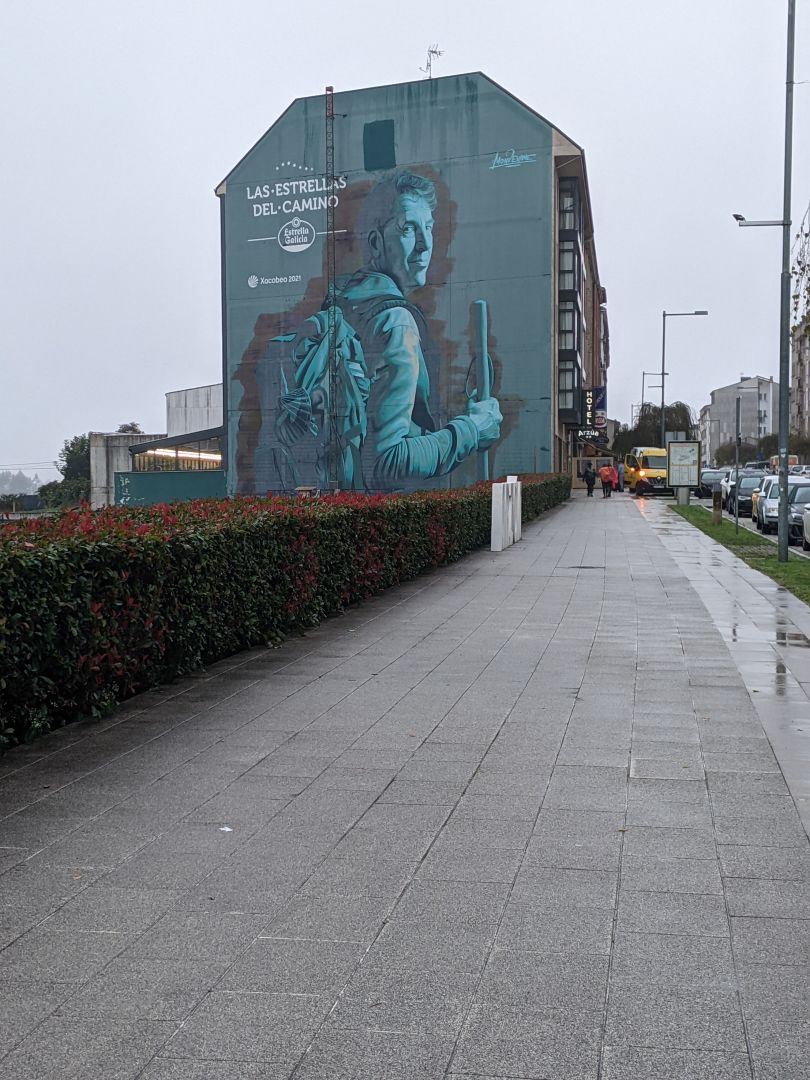 Zbudil sem se v najgrši dan na caminu. Takoj je bilo treba ogrniti pelerine in jih nositi ves čas hoje. Takoj iz alberga sem srečal dve Zadrčanki, ki sta hodili Camino primitivno. Zanju je bil prehudo napor, zato nista nosili nahrbtnikov. V Arzuo sem prišel ravno, ko so se vsuli iz albergov vsi romarji. Danes se mi je zdelo, da jih je še malo več. Zato sem poklical, da sem si rezerviral alberg in to tega, ki sem ga poskušal rezervirati že leta 21 in 23. Pa je bil zmeraj poln. Je pa res lep in čist, kot ga hvalijo, in eden prvih albergov že od leta 93.