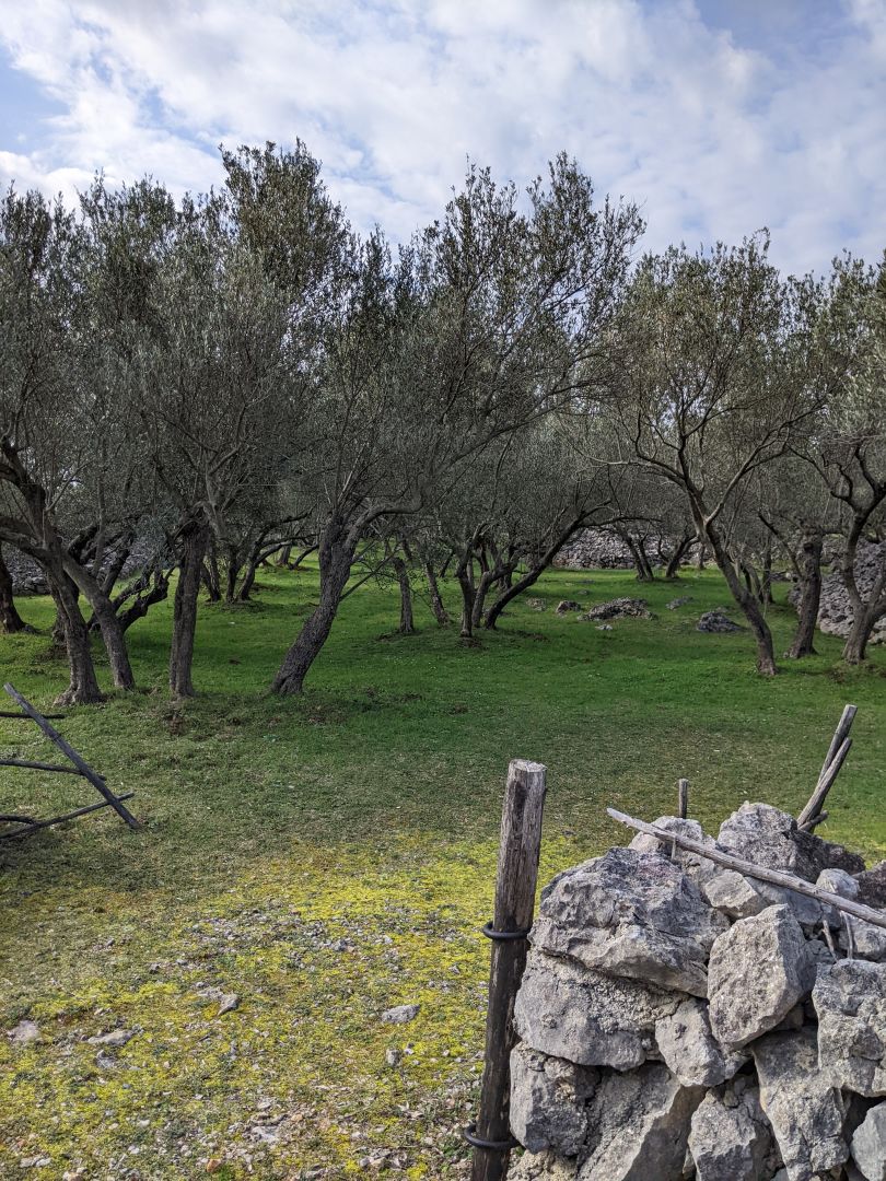 Danes pa je bila pot bolj planinska,, gor in dol.veliko kamenja .Izbrala sva samo eno bližnjico in se seveda izgubila tako , da je bil izkupiček zelo skromen. Sva pa tam našla odličen prostor za malico. Občudovala sva neštevilne kamnite ograje, ki so jih postavljali iz kamenja, ki so ga pobrali da so pridobili nekaj zemlje. Sedaj so to lepi oljčni nasadi.