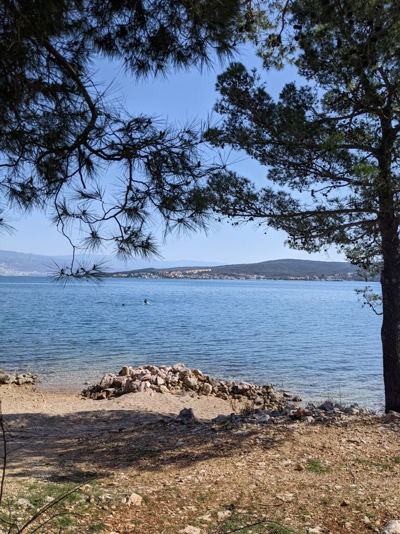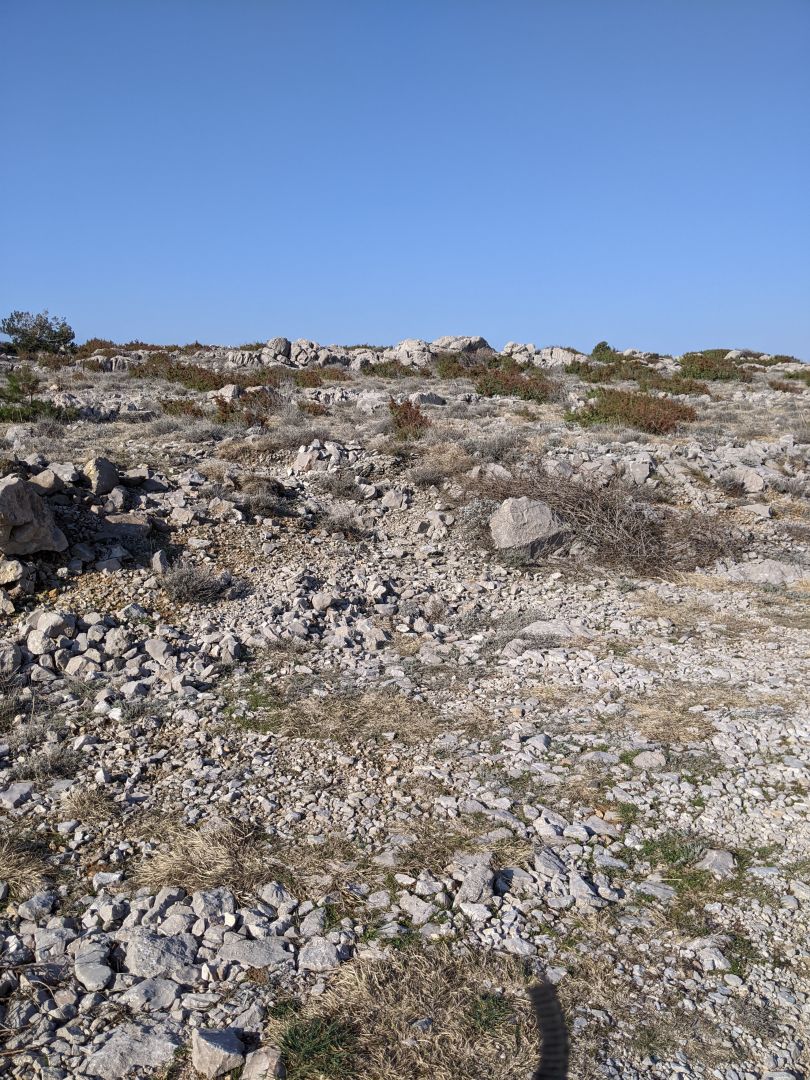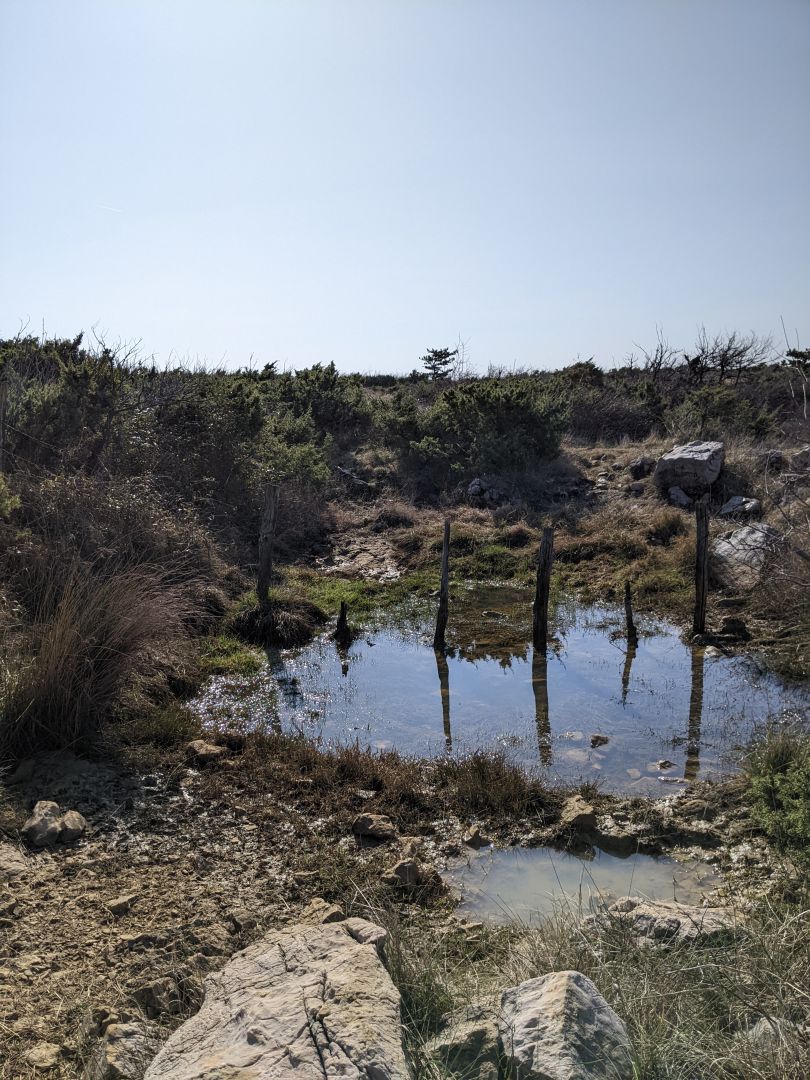 Naš zadnji dan smo se odpeljali do letališča kjer sva midva začela peto etapo. Domen je nadaljeval do Tribaljskega jezera, nad katerim je še eno vzletišče. Pot je primerna za ta letni čas, ker je ves čas po soncu, ki sedaj prav prijetnoo greje ob lahnem vetriču. Ob poti je veliko žajblja in smilja, ki ravno začenjata odganjati. Nabrala sva ga ravno za vzorec. Na polovici poti se nahaja jama Bisernica ki je na slikah kar velika. Trenutno je zaprta.Do nje pa najprej strm spust, nato pa vzpon, ker ne uporabljava dovolj pogosto navigacije na kateri bi videla, da pelje bližnjica kar po ravnem. Zadnji del poti pa po cesti, ki sedaj ni zelo primerna. Ker poteka ta odsek skozi Soline, nisva rabila prevoza.. Zadnji dve etapi camina sta planinski brez dostopa do voznih cest, zato ju prestavljava na kakšen drug termin.